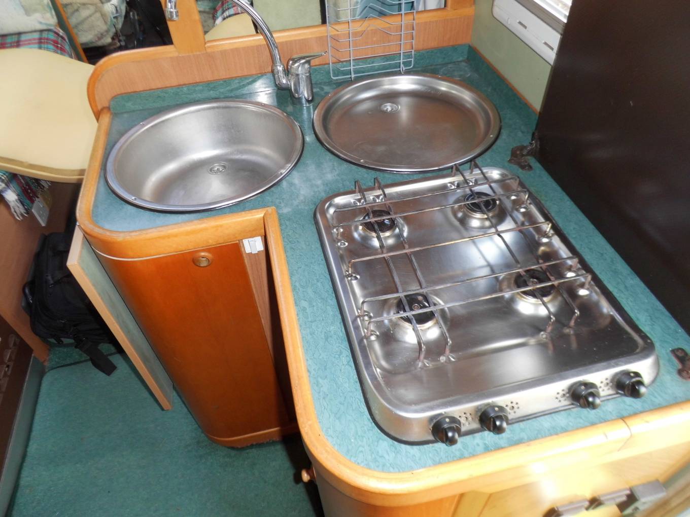 If you enjoy cooking this motorhome has everything you need including a 4 gas burner hob, an oven and grill, a 3 way fridge freezer, a sink with mixer tap and lots of cupboard space to store your utensils and crockery.