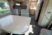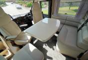 As you step into the motorhome, towards the front is the L-shaped lounge / dining area with large dining table that will seat six in comfort with the front seats swivelled into the area. There is a large, double drop-down, over-cab bed (never used), that can be access from a short ladder or by stepping from the single side seat. Towards the centre of the motorhome is the kitchen area complete with 2-burner gas hob with one induction ring, stainless-steel sink with mixer-tap, large 3-way fridge with separate freezer and an oven / grill fitted above. Towards the rear is the lovely washroom area, accessed through a sliding privacy door complete with cassette toilet on one side, full size separate shower on the other side and a basin with mixer-tap and mirror in the middle. Step from the washroom and into the bedroom with large island bed that is accessed from either side and again with sliding privacy doors either side. This van is fully winterised, has removable carpets, Truma dual fuel blown-air heating complete with under floor heating, dual fuel hot water system and there are TV points by the habitation door and bedroom area. Externally, there is a large garage that can be made even bigger by raising the bed above, BBQ point, shower, 240V socket and a solar panel fitted for off-grid use.