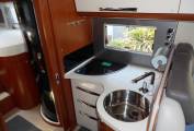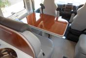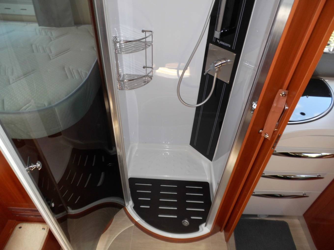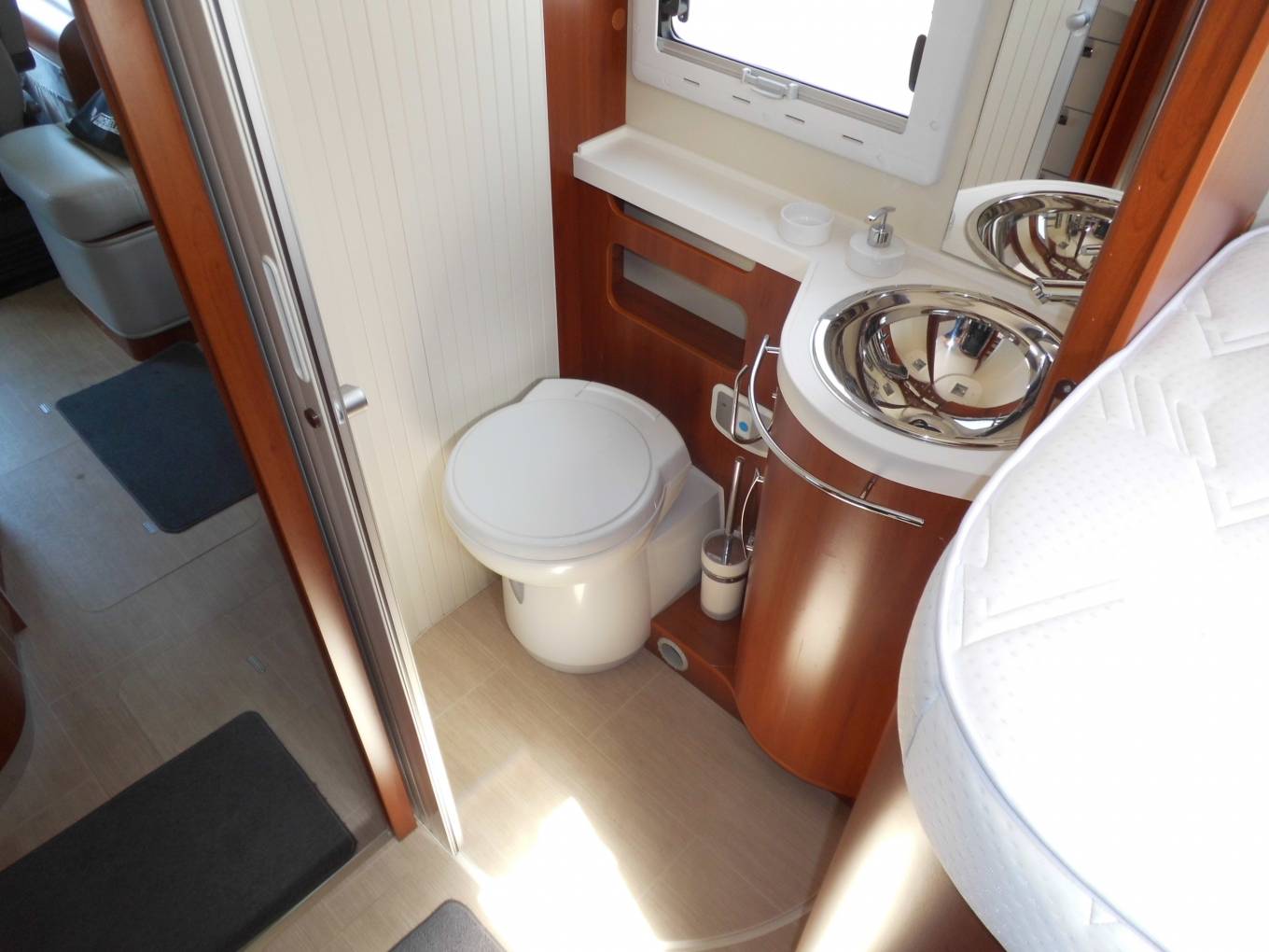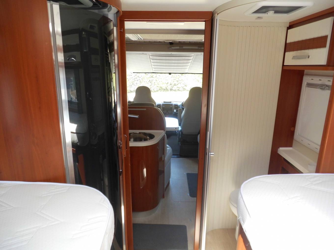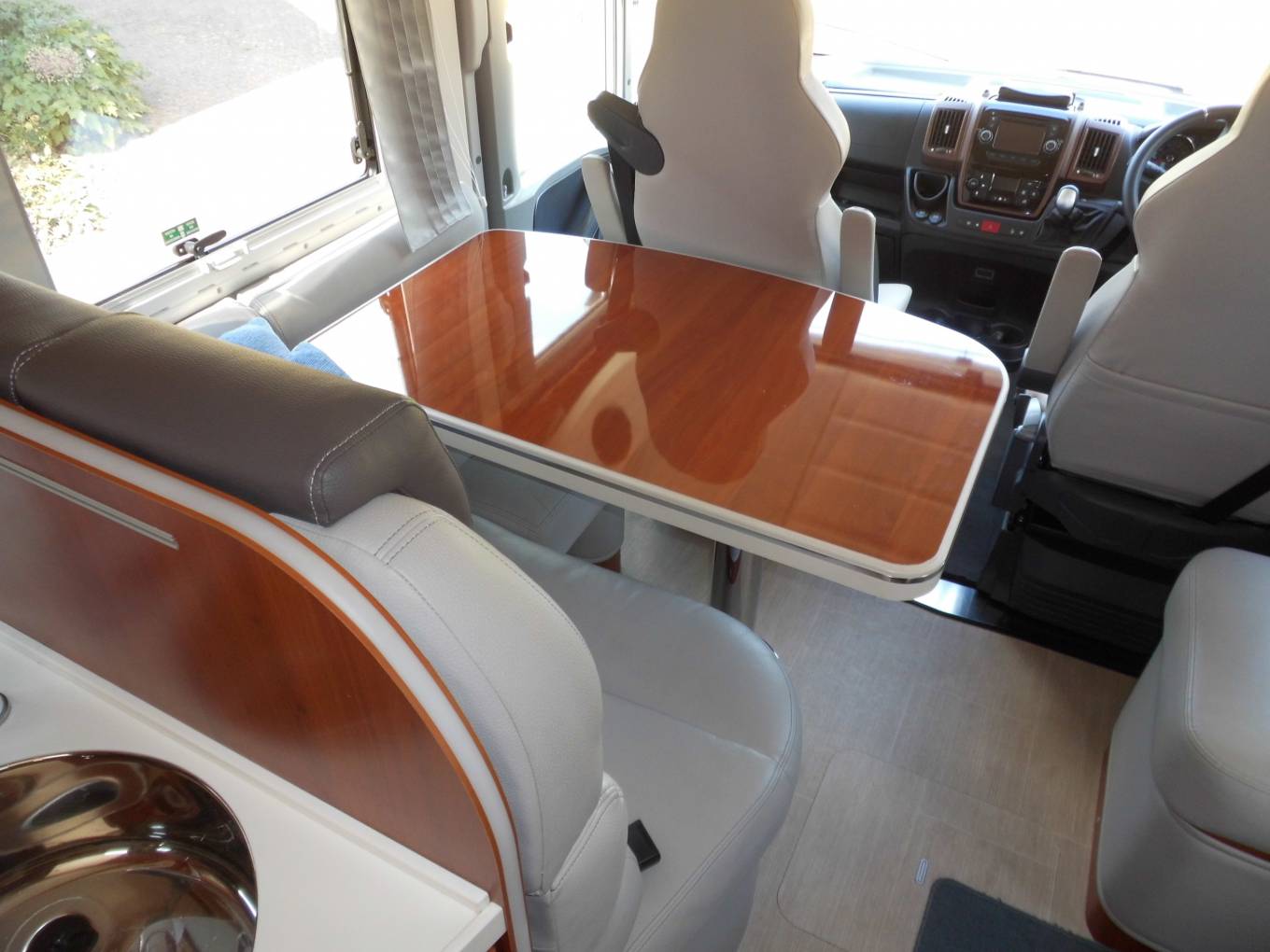 This is a stunning Mobilvetta K Yacht Teknoline 85 motorhome with full leather interior reflecting the exquisite Italian style and design.. This A Class on Fiat chassis has a 2287 cc diesel engine. This motorhome has a massive spec and is as new. The added extras are: satellite system and dome, TV, Alloy wheels, 130W solar panel, stunning chrome tow bar, one extra leisure battery, 300W inverter, cat 1 alarm, Gaslow refillable system, digital cab aircon, reversing camera, 2 gas bottles and a diamond bright kit. It is a righthand drive with an automatic gearbox which is an excellent upgrade for this vehicle. It comes with a breathable external motorhome cover. The stunning kitchen area is elegant with it's gloss and chrome fixtures. It comes equipped with a three ring gas hob,oven and grill, fridge and a sink/worktop area with ample storage cupboards and drawers. The dining area consists of full leather seats and a polished table with the captain seats swivelling round to make a perfect socialising area. At the rear of the motorhome there are luxurious yacht styled fixed single beds with steps leading up to them. A further double bed is made up above the cab. The bedroom has a large amount of storage in the form of cupboards. The washroom with it's lovely curved furniture and shiny chrome sink and taps is exquisite. There is also a separate spacious shower room.