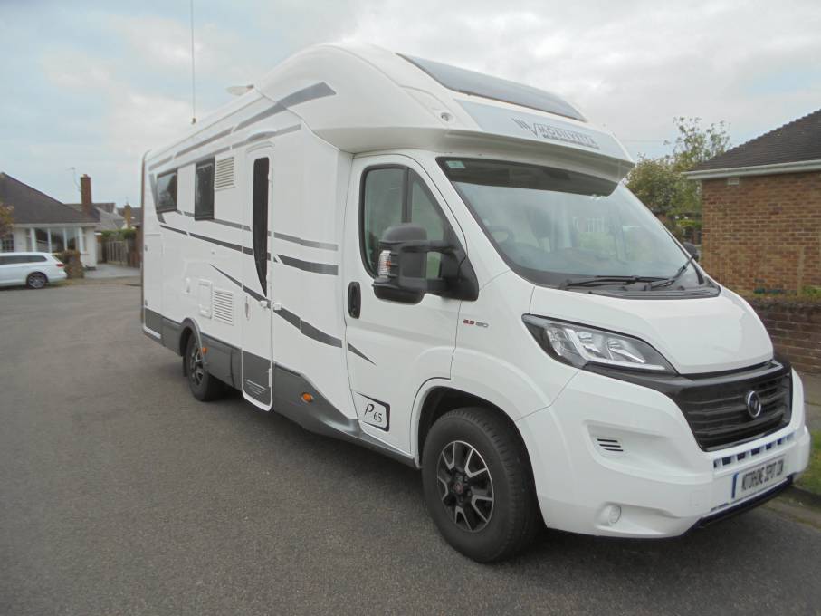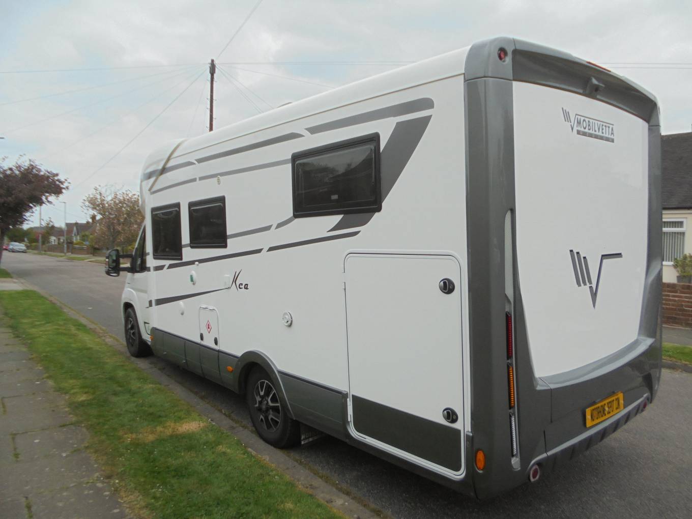 Here we have for sale a beautiful 4 berth Mobilvetta Kea P65, registered July 2018, one owner from new with full service history and just 6,700 miles on the clock. At the rear is the bedroom with a large fixed bed that can be used as a double or 2 singles and underneath is a large garage. Forward of the bedroom is the bathroom and shower and in the center of the van is a well equipped kitchen. At the front is the lounge area with 2 captains seats and above this is an electric dropdown bed. It comes with 4 Seat Belts, Cab Air Con, Cruise Control, Alarm, Rear Camera, DAB, Bluetooth, TV, Under Floor Heating, Solar Panel, Outside Shower and Gas Bottle. It also comes with Drivers Pack and 150 bhp engine. A superb example, call for more photos and information.
