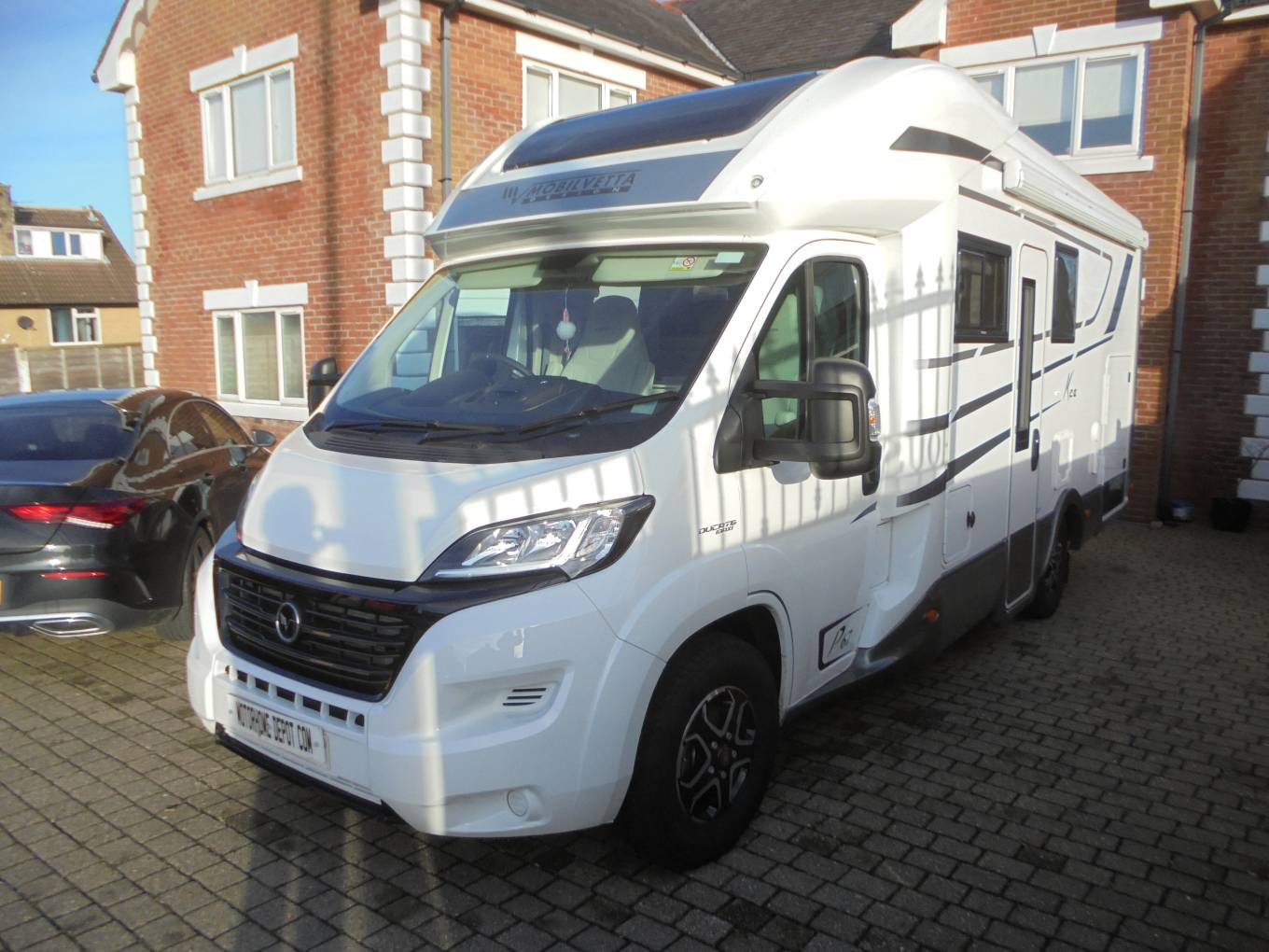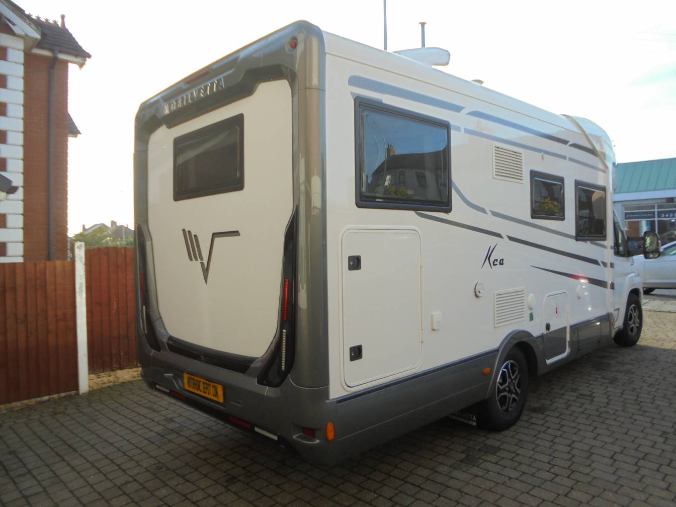 2021, Mobilvetta Kea P67, 4 berth motorhome, with 4 seat belts, fixed bed and full sized garage. It is built on the Fiat Ducato 2.3 with automatic gearbox and was registered in July 2021 with 1,572 miles on the clock and is in superb condition inside and out. At the rear there is a fixed double bed, under which is the garage with 2 access doors. In the centre is the kitchen and bathroom and at the front is the lounge area with 2 captains seats and electric drop down double bed. This motorhome is beautifully finished and comes with a high level of equipment including, Cab Air Con, Cruise Control, Rear Camera, DAB Radio, Sat Nav, Alloy Wheels, TV, Blown Heating, Awning and Solar Panel. It also comes with Gas Bottle, Mains Lead and 2 sets of keys. This is an excellent example, part exchange welcome, call for more photos and information.