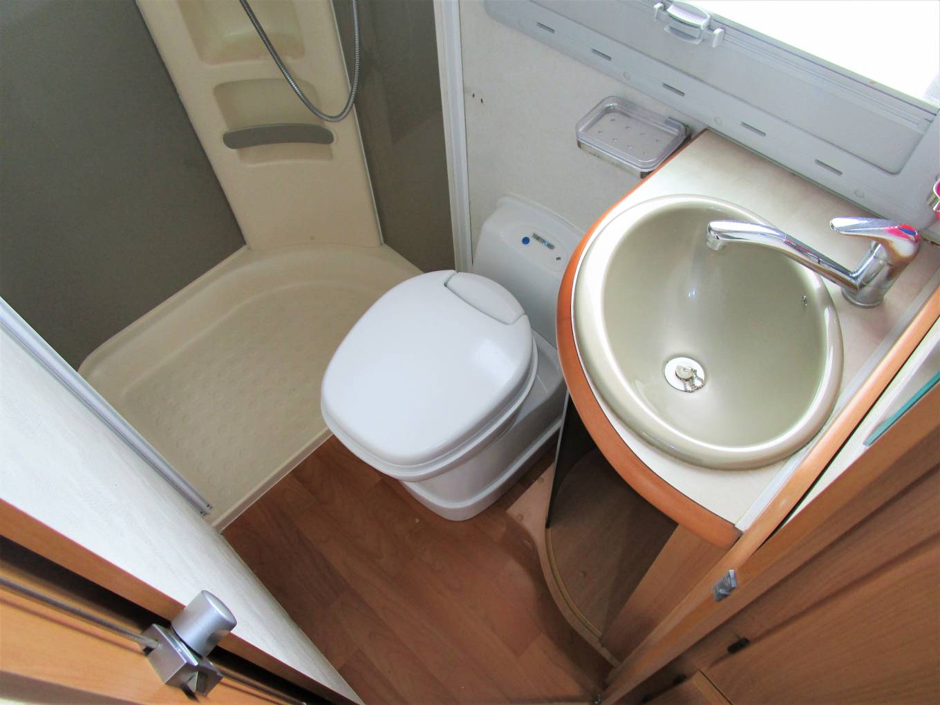 cassette toilet and wash basin with vanity unit.