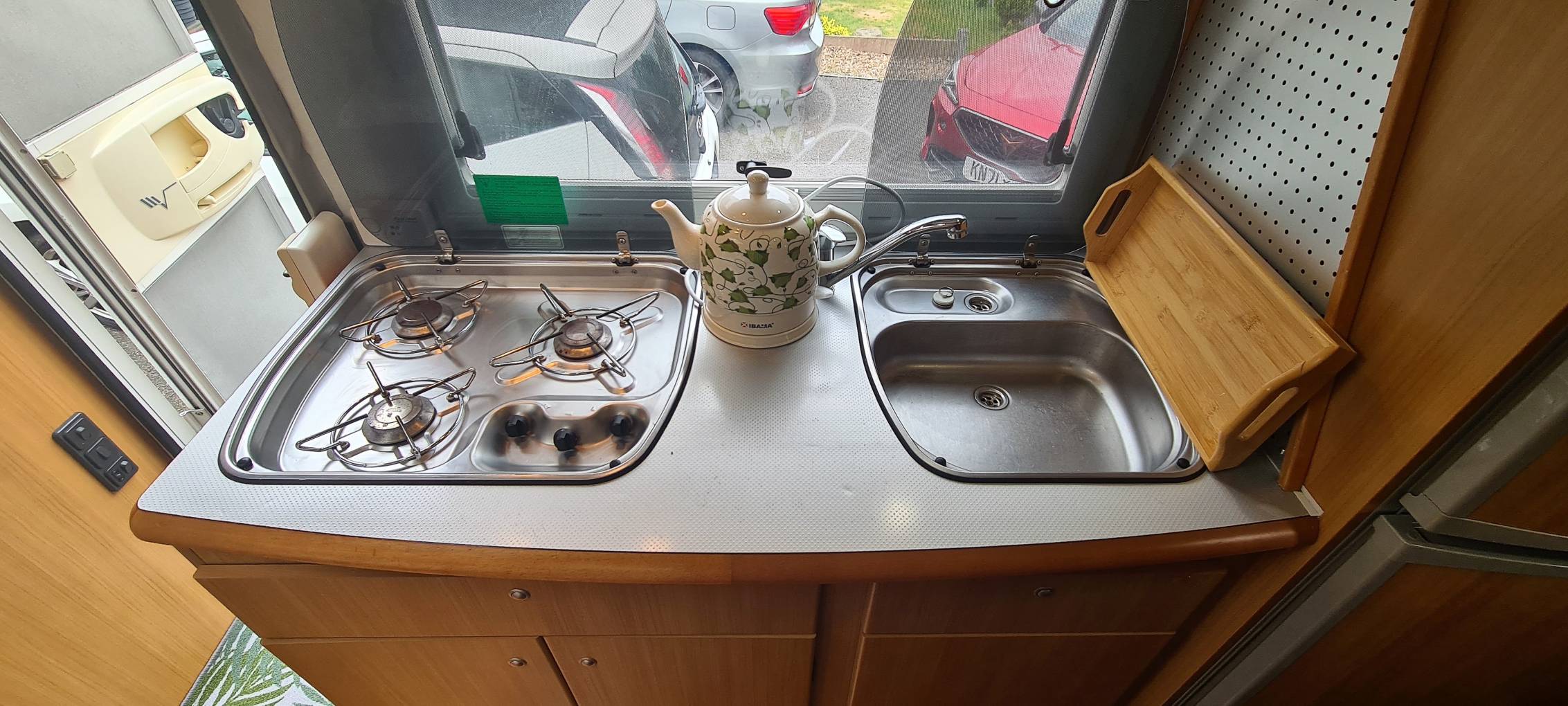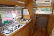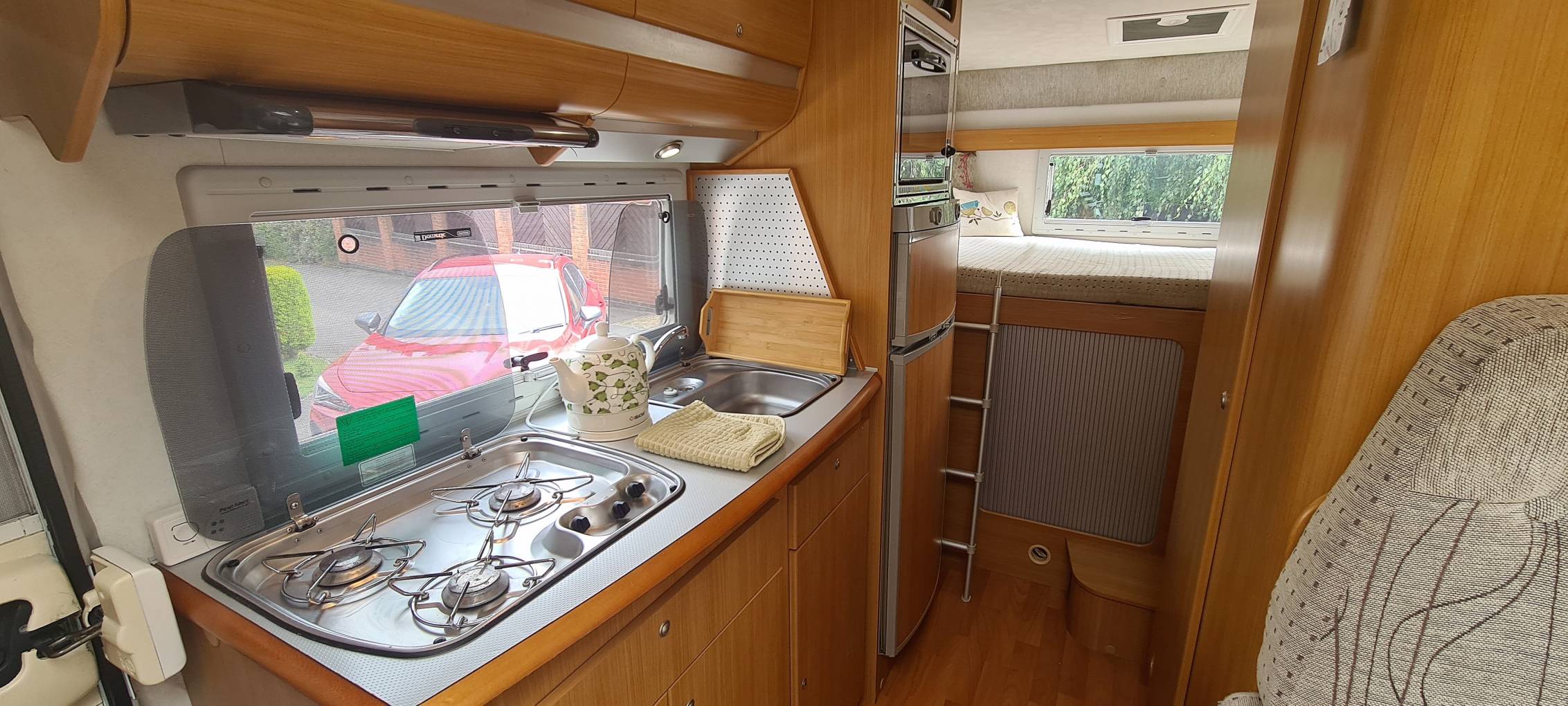 The van is large and spacious and will be perfect for families, with everything you could require whilst camping including a 3 gas burner hob, oven and grill and a large fridge with freezer compartment. The Washroom is very big with a large separate shower, toilet and vanity style sink.