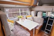 The dinette converts into a bed, there is a large double transverse bed to the rear and a queen size bed over the cab.