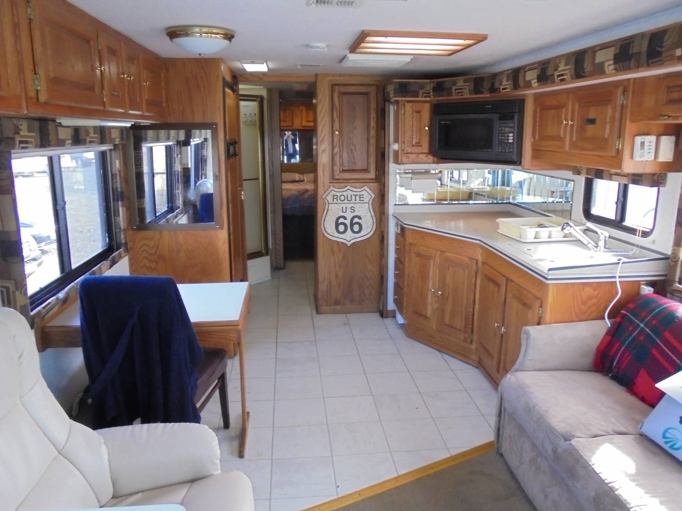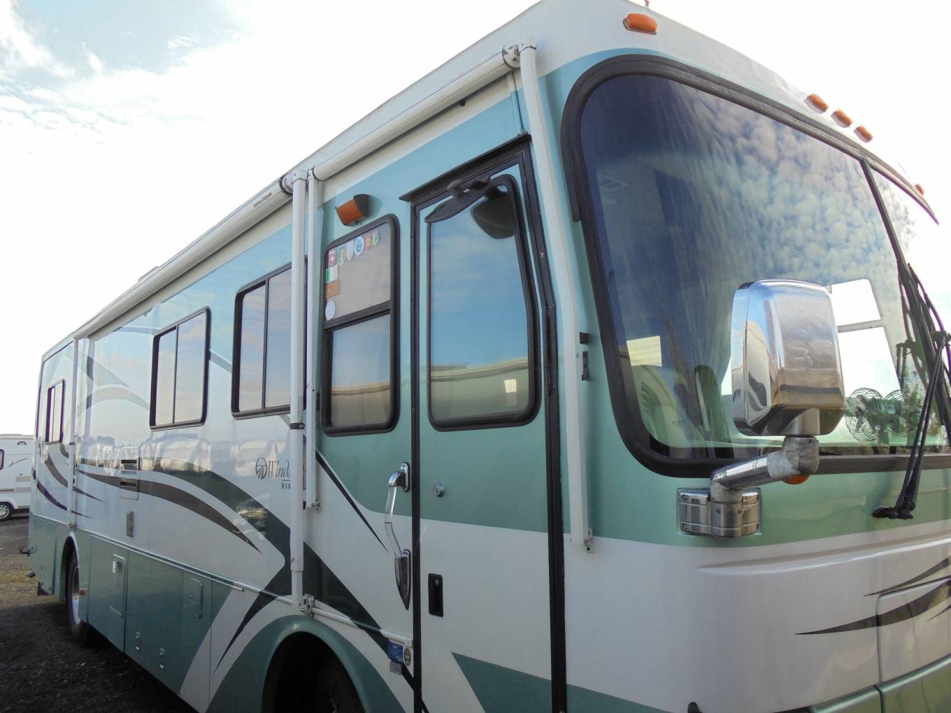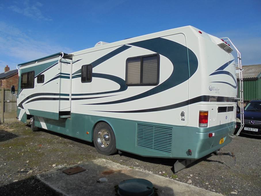Monaco Windsor, this is a luxury 4 berth American RV with Deisel engine for economy an end bedroom with island bed and lots of extras. The vehicle is 34 feet long with lots of living which is increased by a large single slide out. It comes with integrated deisel generator, cab and habitation air con, cruise control, twin rear camera, blown heating, large LPG tank and brand new washer dryer. It also comes with auto seek satellite system with 2 TVs, tow bar, solar panels and BBQ point. It has been well maintained with recent service, new tyres, 2 new windscreens, MOT till Jan 2020. This is a great example with fabulous living space and deisel economy.