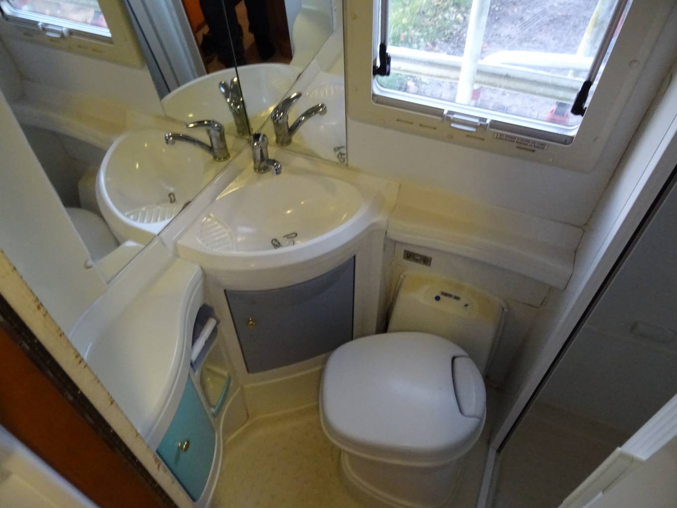 To the rear of the vehicle you will find a large bathroom with separate shower, toilet and sink.
