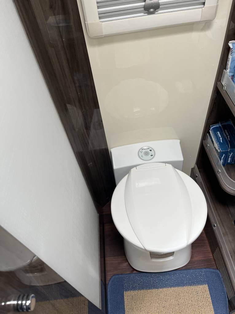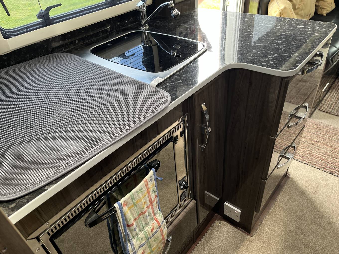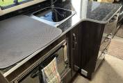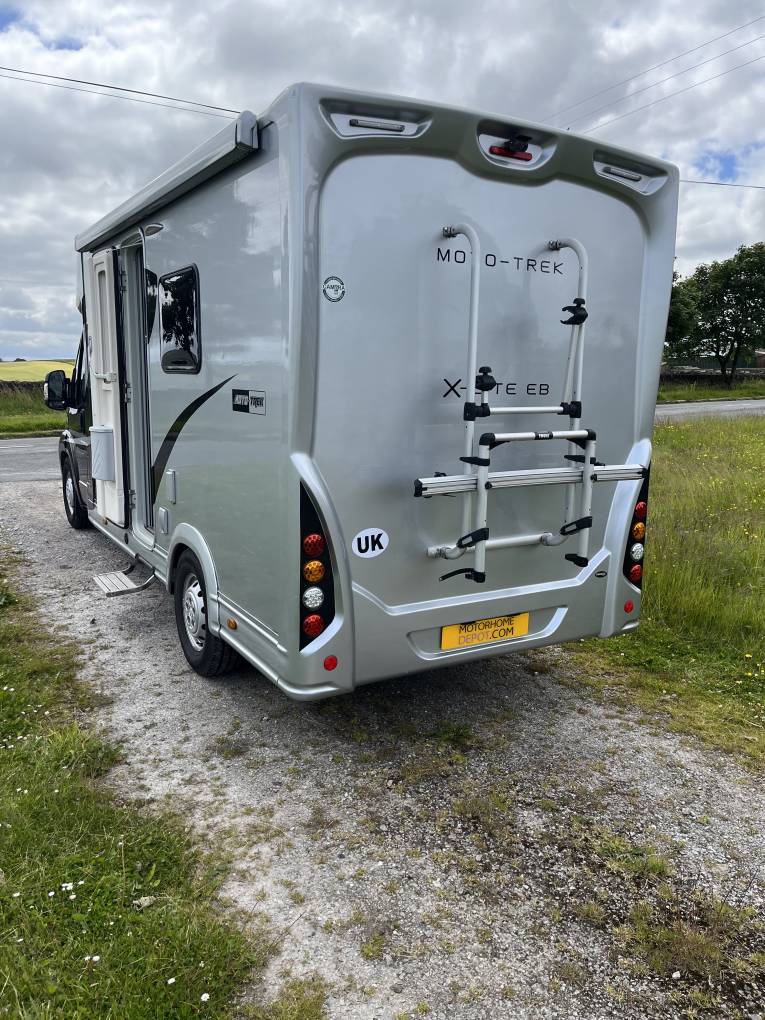 is an awning, bike rack and solar panel fitted.