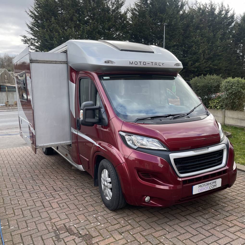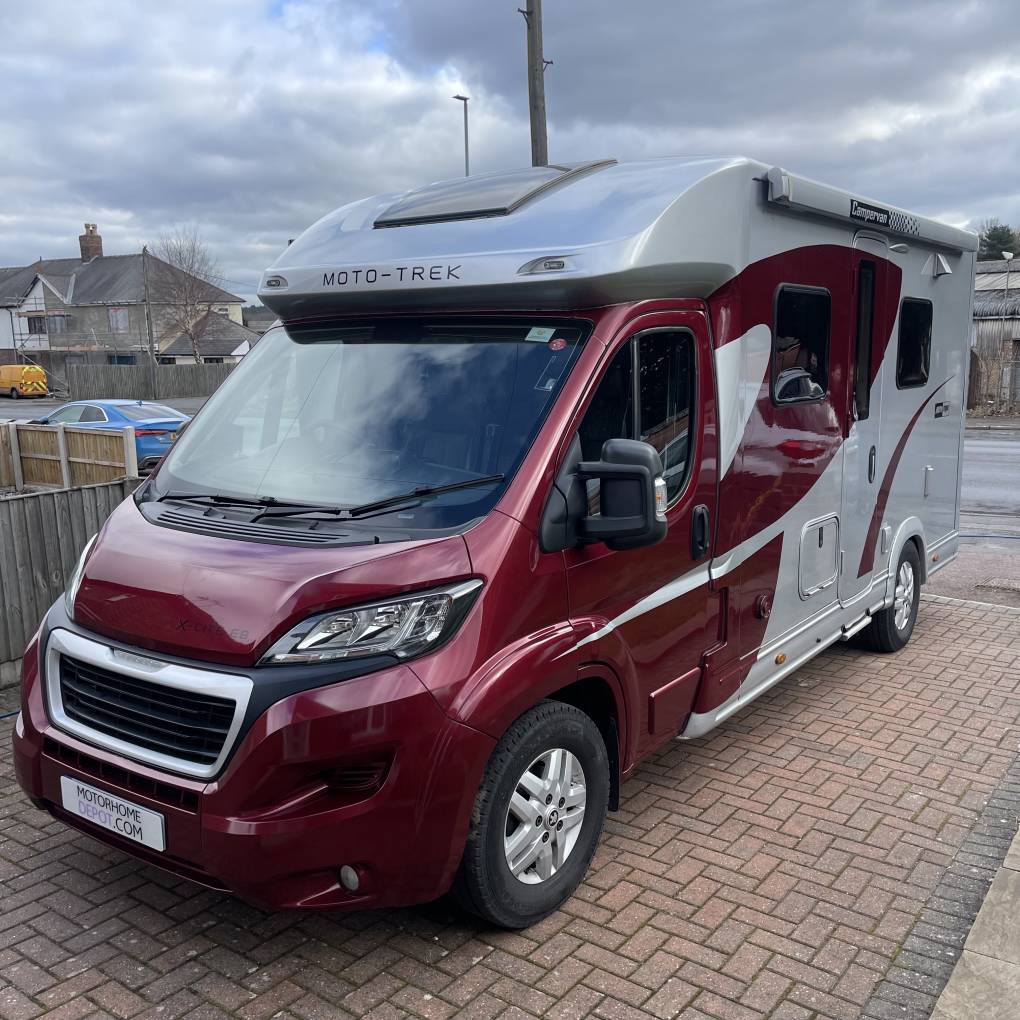 Welcome to the sale of this excellent Moto-Trek X-Cite EB based on a 2.2 Peugeot diesel with a 6 speed manual gearbox. This superb motorhome really has to be seen to be believed. It comes on the 3500kg chassis meaning it can be driven on a standard UK license, with full service history and just 1 owner from new. All upholstery is currently covered as you can see from the images which has allowed the original brown leather to be kept in good condition.