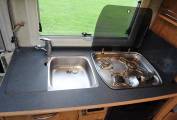 aerial, Large drop down bed over cab with access ladder. Galley kitchen