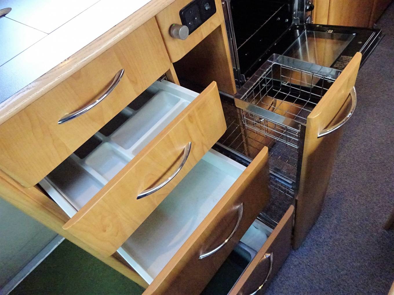 gas hob unit, Electrolux 104 litre fridge freezer, Smev gas oven and grill.