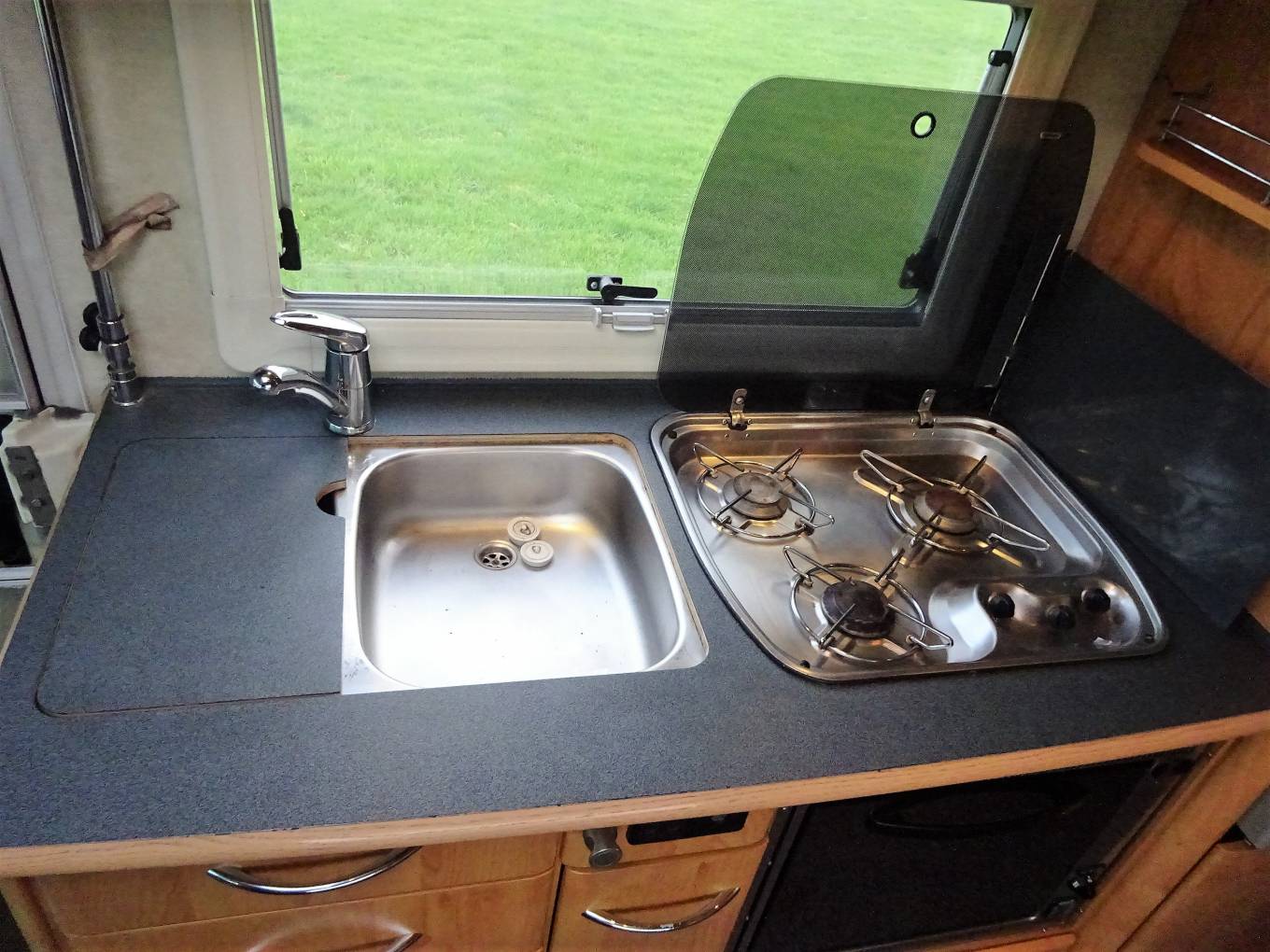 with Twin bowl stainless steel sink unit with matching worktop covers, 3 burner