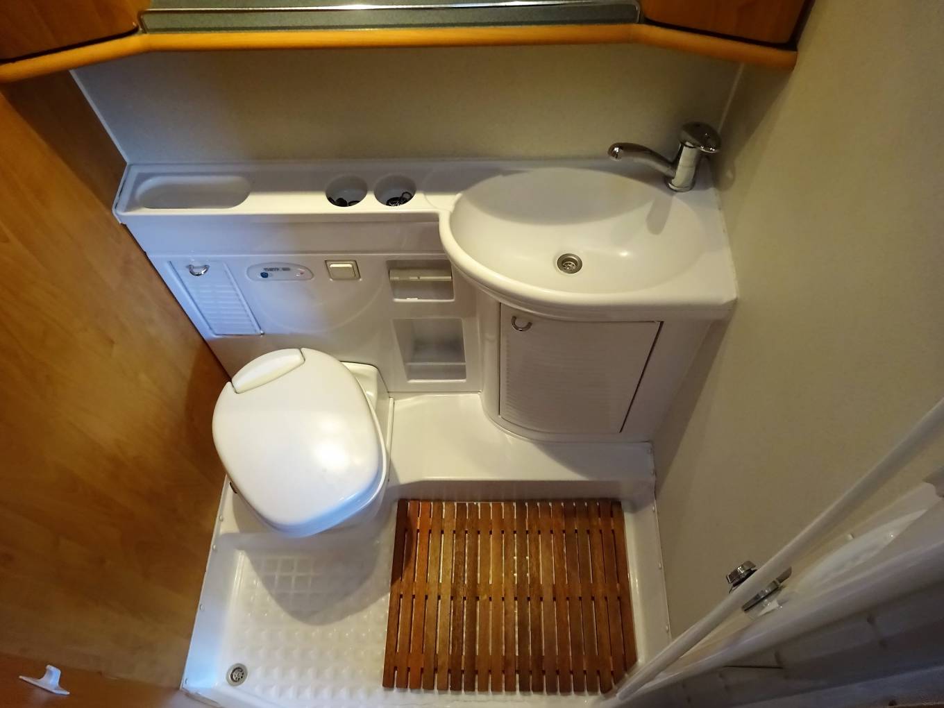 Truma gas blown air heating. Washroom with cassette toilet, Roof vent,