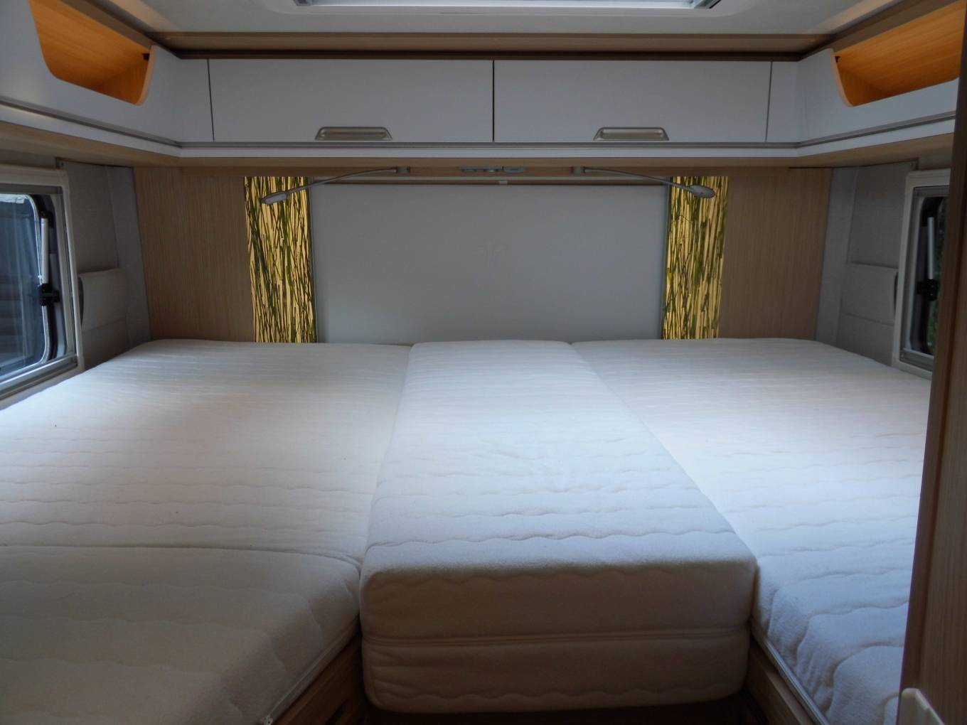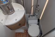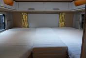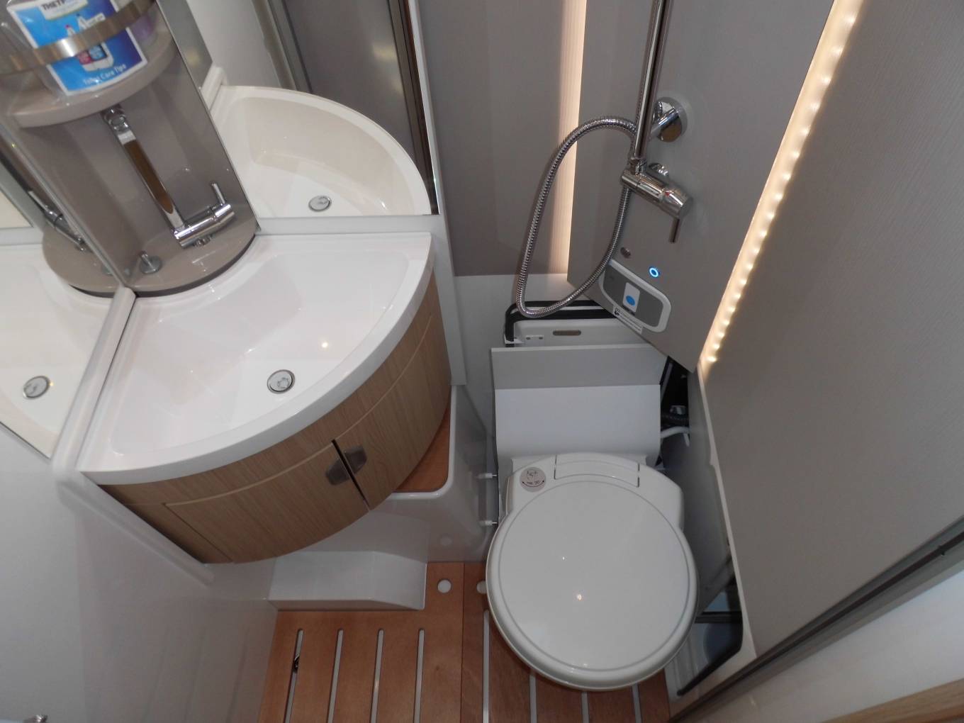 At the rear of the motorhome are 2 superb single beds fitted with high quality foam mattresses which sit on a spring system giving you a great night's sleep every night. These 2 singles with the addition of an extra foam mattress easily convert in to a large double bed. As you move forwards you come to the state of the art bathroom which has to be seen to be believed. With the simple press of a button the toilet electronically slides and disappears behind a pair of folding doors. And as if that wasn't enough, the rotatable corner washbasin disappears completely in to the wall when not required making more space for the largest shower in this vehicle class.