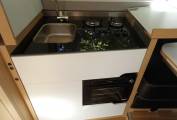 The innovative kitchen concept turns a sideboard in to a loft kitchen and provides plenty of drawer and cupboard space to store your ingredients and utensils. There is a high quality two-flame stainless steel gas cooker with electric ignition built in. All drawers feature a soft close mechanism and the luxurious kitchen comes with a large 140 litre fridge with built in freezer, perfect for keeping your beers and a few bottles of wine nicely chilled.