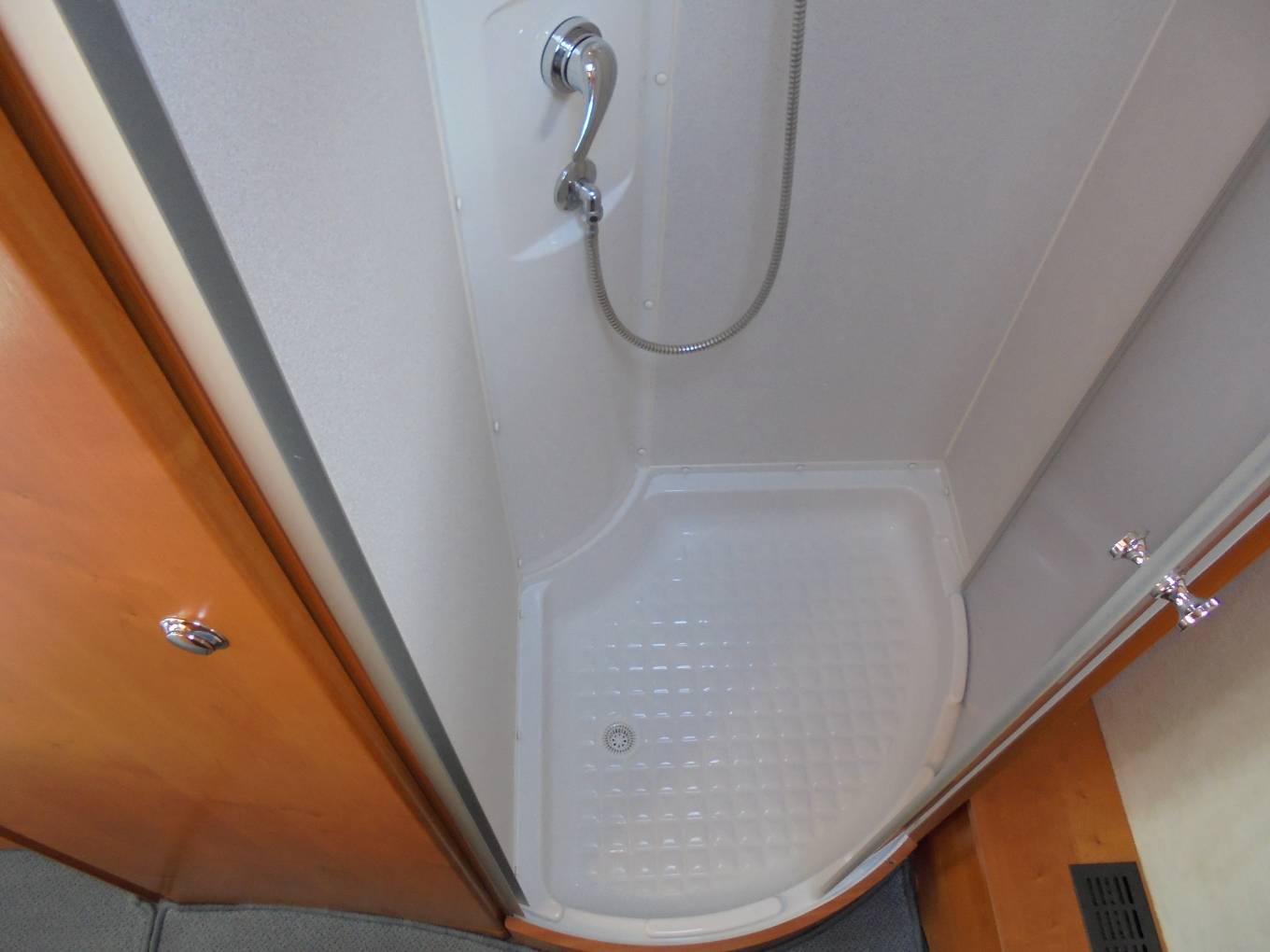 which is separated from the lounge dinette by a full shower cubicle on one side