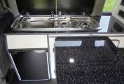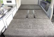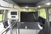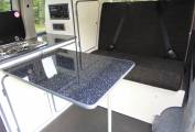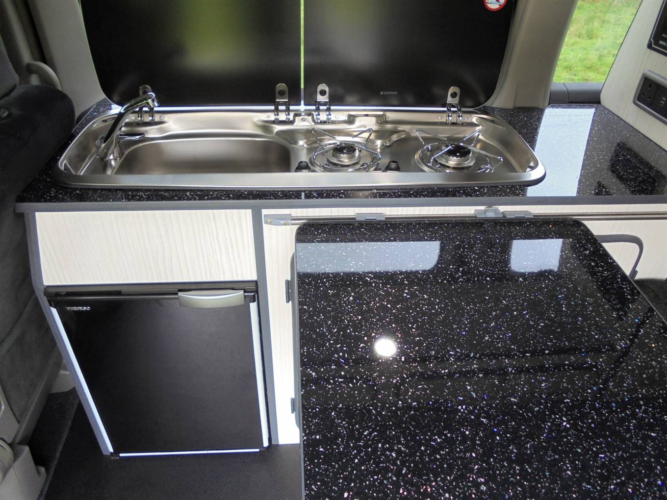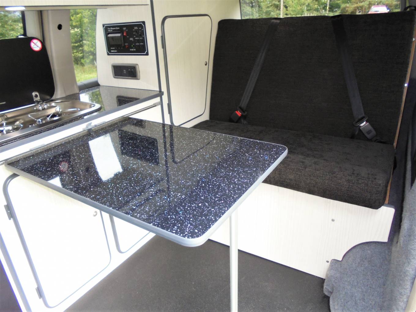 Layout is centre dinette, lounge and kitchen area plus an elevating roof. The lounge area is fitted with a rock n roll bed for sleeping whilst the elevating roof comes with boards which provide additional sleeping berths. The kitchen area has a sink, hob with 2x gas rings and 12v fridge. The campervan has a dining table, split charge system to charge the leisure battery while driving, USB, 230v power points and LED lighting. Included in the sale is a fitted satnav system which includes a TV/DVD combi.