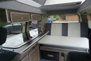 This is a real head turner, the exterior paintwork is finished in a striking white which is complimented with chrome trim and alloy wheels. The van has been exceptionally well converted with a spacious feel throughout. The pop top roof is hinged on the side to maximise space when using the kitchen area. The kitchen area is a major feature with a hob, sink and fridge. The double rock & roll bed converts easily back to luxury seating. The vehicle is automatic and very comfortable to drive and benefits from selectable 2 or 4 wheel drive. It really needs to be seen to fully appreciate the finish both internally and externally and the quality and practicality of layout