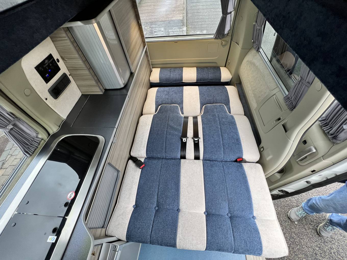 The rear seat quickly converts to a 5ft 9in x 3ft 8in double bed for sleeping.