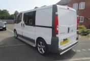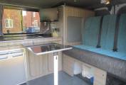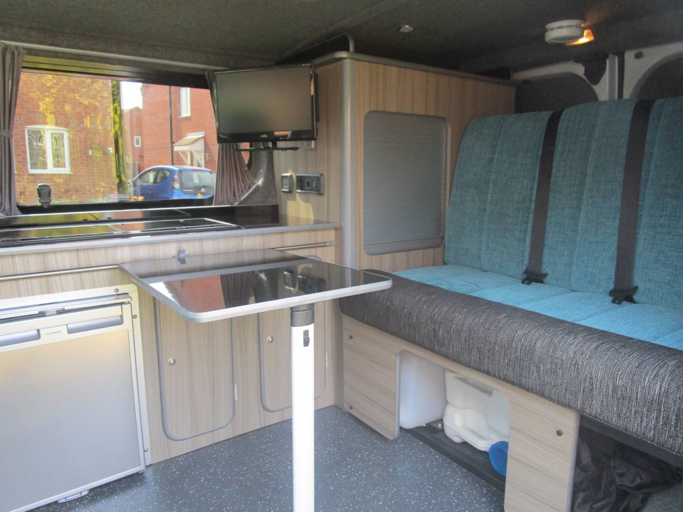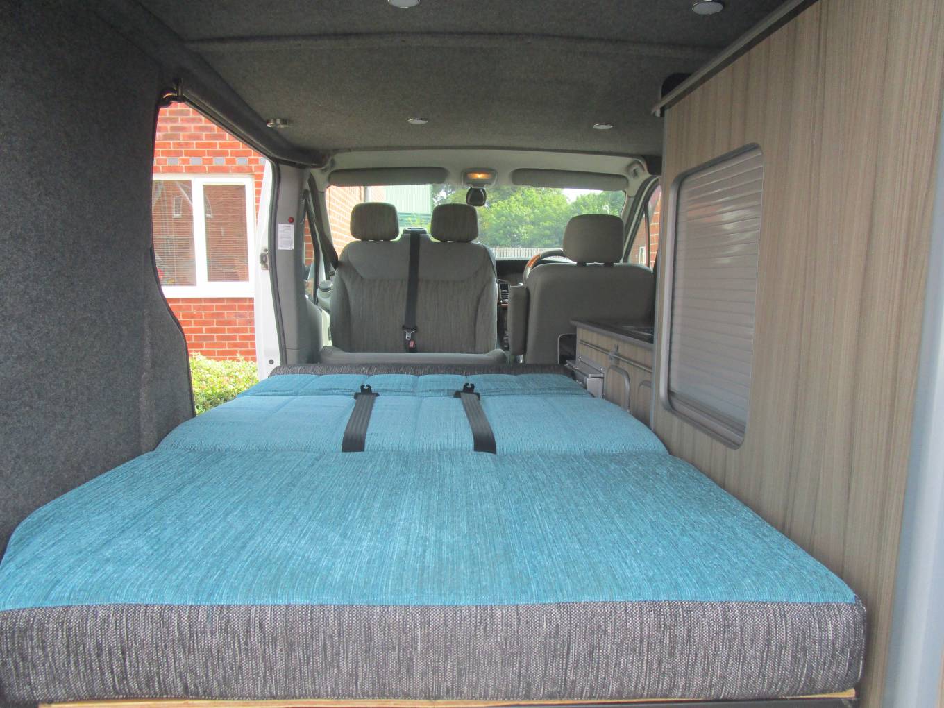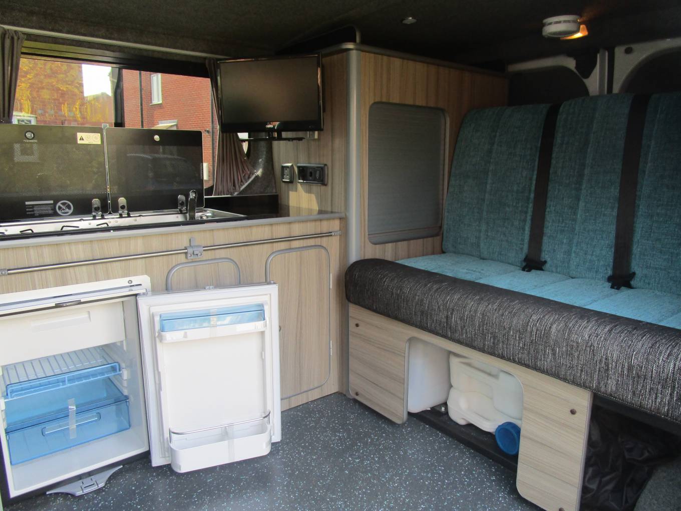 Fully equipped with Rock & Roll double bed with two seatbelts, Dometic combined two gas burner hob and sink and Dometic crx50 fridge. The camper comes with refillable Gas It 6kg bottle, Kiravans swivel double seat, Propex hs2000e heater, water and waste tanks and pump, bipot 30 cassette toilet, TV and Aerial, Sargent ec160 split charge relay and electric control unit with battery charger, 12v and 240v sockets, LED lighting, USB charging point and 240v hook up and cable. There are black out curtains to the interior side windows. The cab features driver air bag, electric windows and mirrors along with Cab air con and Reverse Sensors. To the exterior of the vehicle you will find 18” alloys, side running boards and nudge bar to both the front and rear.