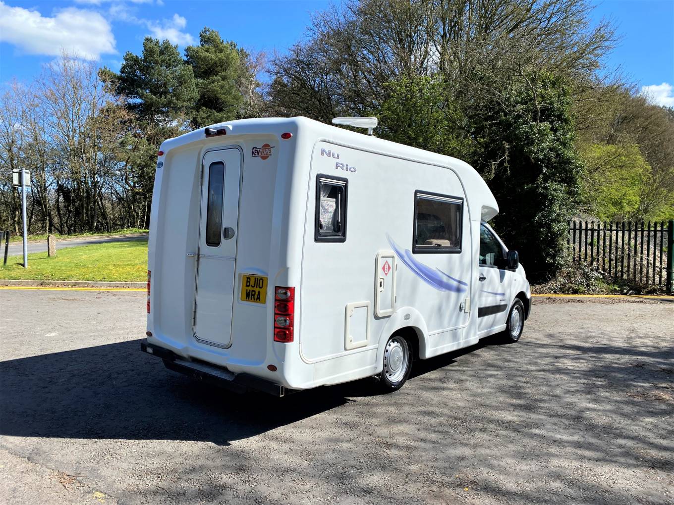 The Nu Venture Rio is the most popular model in the range with a rear door entrance, a front lounge is comfortable and ideal for relaxing during the day and with no effort at all quickly converts into a large double bed or can be left as 2 long single beds. At the rear of the vehicle is a well fitted kitchen and shower room including cassette toilet.... all in a motorhome that is less than 6 metres in length, drives like a car and parks like car.. Micro motorhoming at it's best.