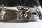 The Kitchen Area has a 2 Ring Gas Hob, Sink with running Water, Fridge and a decent amount of workspace.