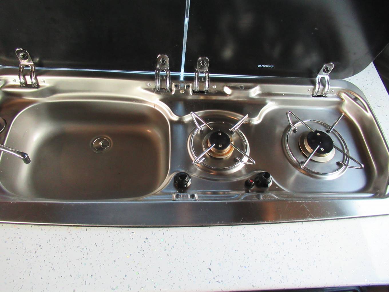 The Lounge area has comfortable seating for up to 3 adults. Its nice and bright due to the re-upholstered fabric and is a great place to relax. The seating area converts into a Double Bed quickly and easily.