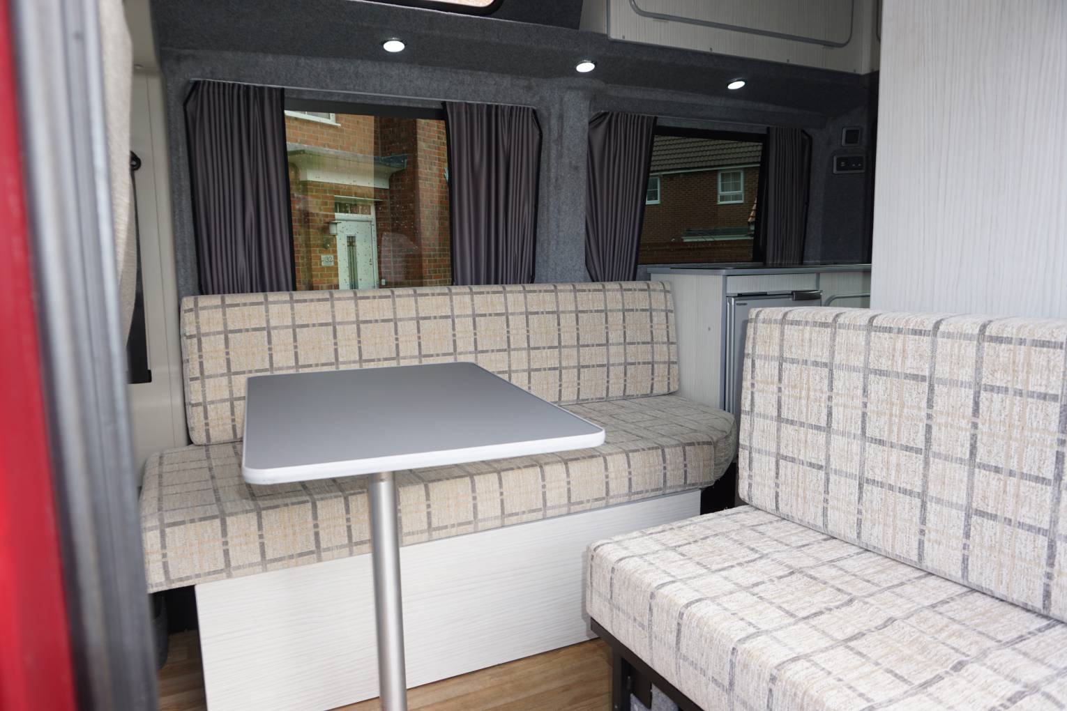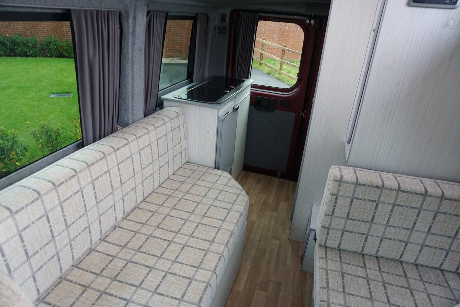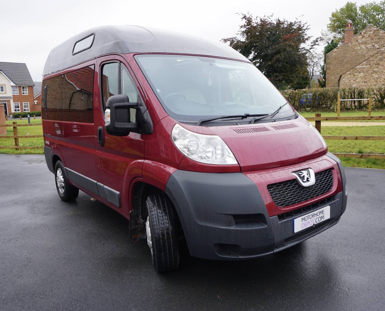 Motorhome Depot present this Peugeot Boxer High Roof Camper Van, conversion done is March 2020, Sleeping 3 in 2 single beds (this could be changed to double) and one above the cab using boards. The seating area is a long bench to one side and a travelling seat, when stopped the seat can be converted into another sofa and access via the rear door. The kitchen area is a sink and 2 ring gas hob with fridge below, opposite this the toilet. The vehicle will come with Full Hab check. MOT until March 2021. And has FSH. For further information and full photo file please contact Lisa or Melvyn
