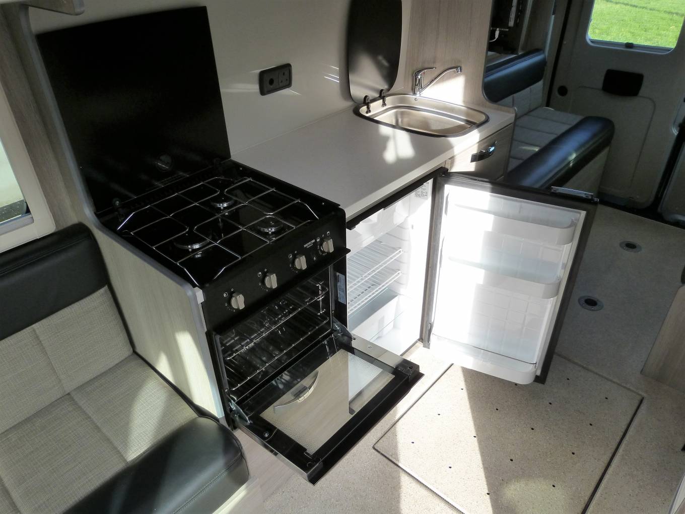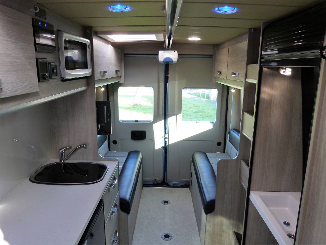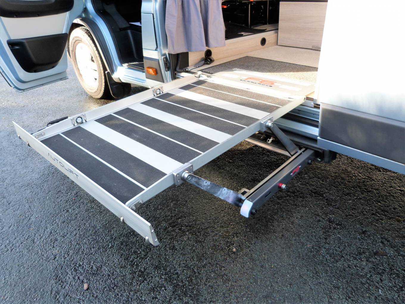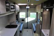 Please call with any questions on 01423 609985. This is a superb example of a recently converted, ex demonstration campervan conversion that can be used as a traditional campervan, or with additional lifts and hoist is a Wheelchair Accessible Vehicle, WAV. The conversion was commissioned by Brook Miller, a specialist mobility equipment supplier, based in Elland, West Yorkshire and then converted by RP Motorhomes of Darley, near Harrogate. It is finished to the highest standard possible, has a new vehicle smell and the only travelled 2134 miles. It is more a 3 bed conversion than a 4, with This Peugeot Boxer Liberation VC640 has a 1997cc engine with 6 speed manual gearbox for class leading efficiency and long distance fuel economy. The standout features of include the fantastic rear lounge, with part leather upholstery, the level of workmanship, including smooth lines and returns throughout and the feeling of space. There are several areas where a wheelchair could be positioned, there are no securing points at the moment, so the new owner has the freedom to choose. At the rear, the 2 sofas are easily converted to a generous double across the full width and combined with the rear doors opening, give a fantastic view out of the rear doors. There is a hoist above with payload of 130kg; the rail that runs the length of the motorhome. There is a washroom area, with a portapotty, sink and shower attachment and drain in the floor above which a wheelchair can be situated, the wrapround shower curtain prevents water ingress into the other parts of the van. The galley kitchen has a cooker, with 3-burner gas hob, oven, grill, sink, fridge, plus a microwave; all complimented by good sized worktop and plenty of storage. There is a lift for access in and out of the motorhome on the near side and this has a payload of 300kg, it is a fully automatic operation. Behind the drivers seat is a smaller sofa which converts into a single bed. Upfront, this exceptional campervan benefits from 2 swivel seats; full Bluetooth capability including a rear-view camera, phone, sat nav and audio; cruise control and leather seats. Additional features include: Truma heating system, TV with aerial, solar panel, 2 tone touch sensitive LED lighting in the ceiling, parking sensors, plus an underslung LPG tank to save weight, space and money vs gas bottles. It is immaculate inside and out, with full length awning and plenty of headroom inside. It works as a WAV or a more traditional campervan and should be viewed at the earliest opportunity in Brighouse, West Yorkshire. Part exchanges are welcomed on this vehicle, for further information please call us on 01423 609985 quoting reference number 142157