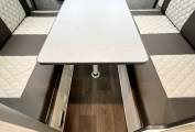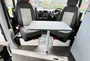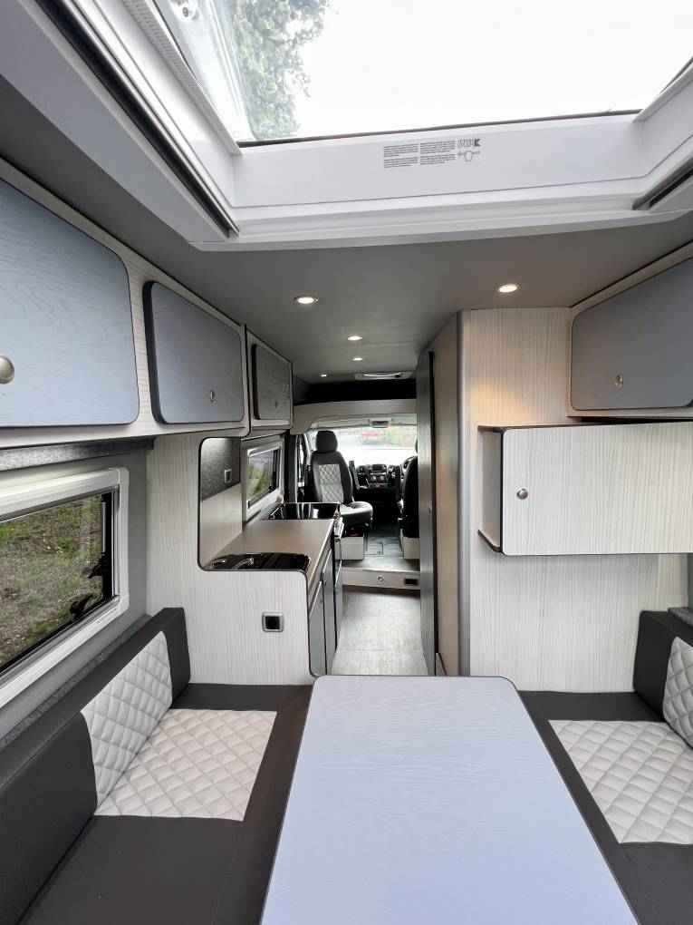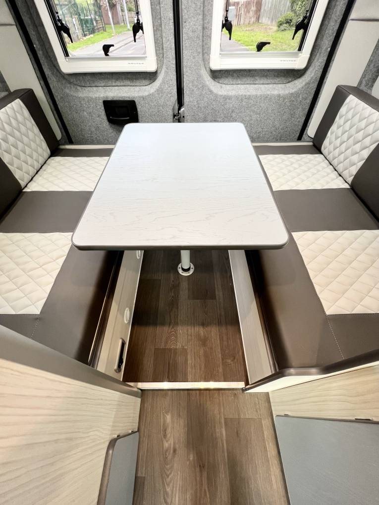 you enter the camper the 2 front Captain seats which swivel around to a table,