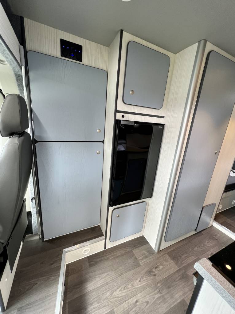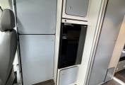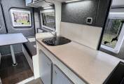 van we have the kitchen area with a Dometic 2 ring gas hob, oven/grill, sink