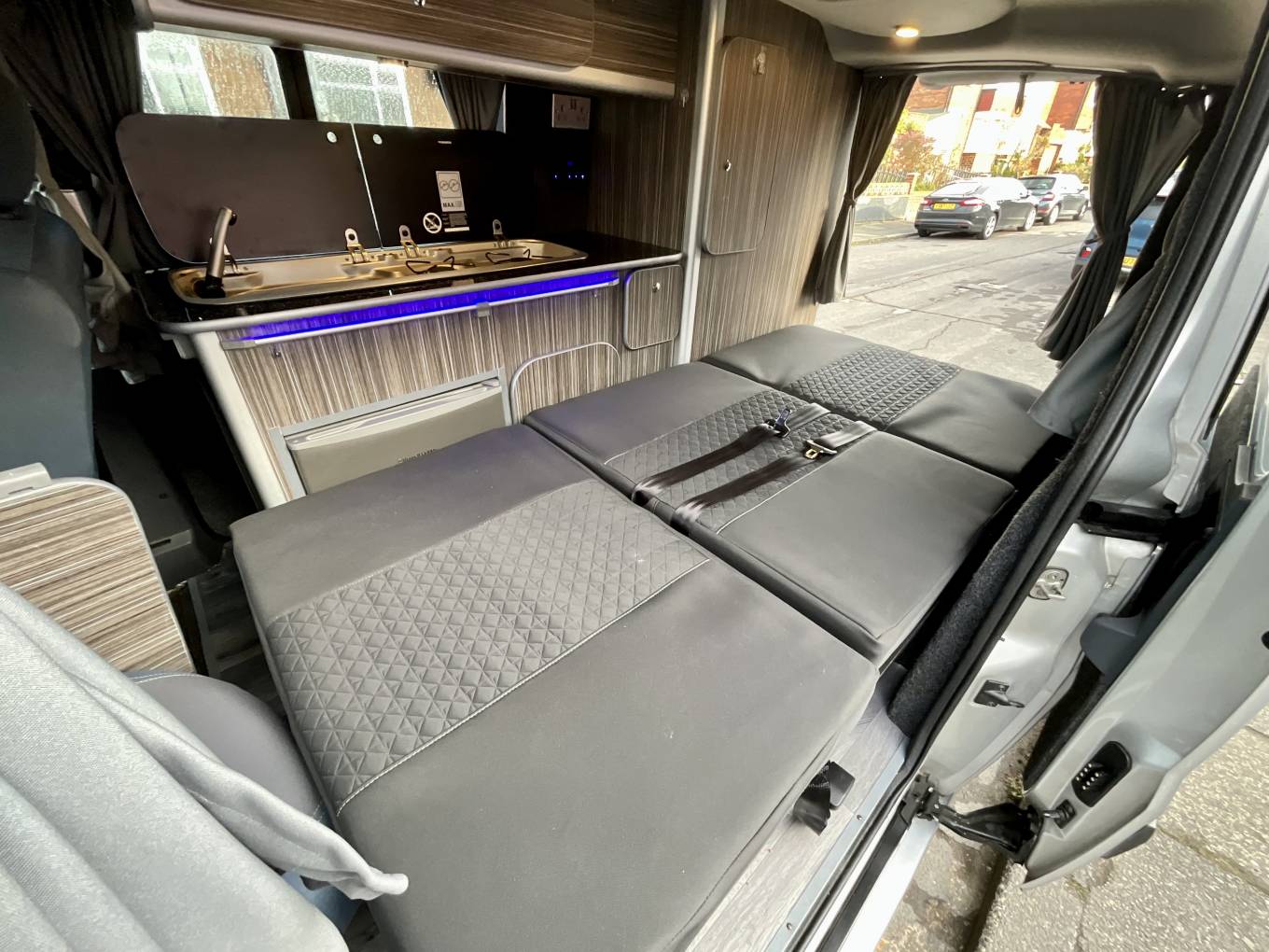 The rear bench folds easily down at night to make up a generously sized double bed measuring 191cm by 94cm.