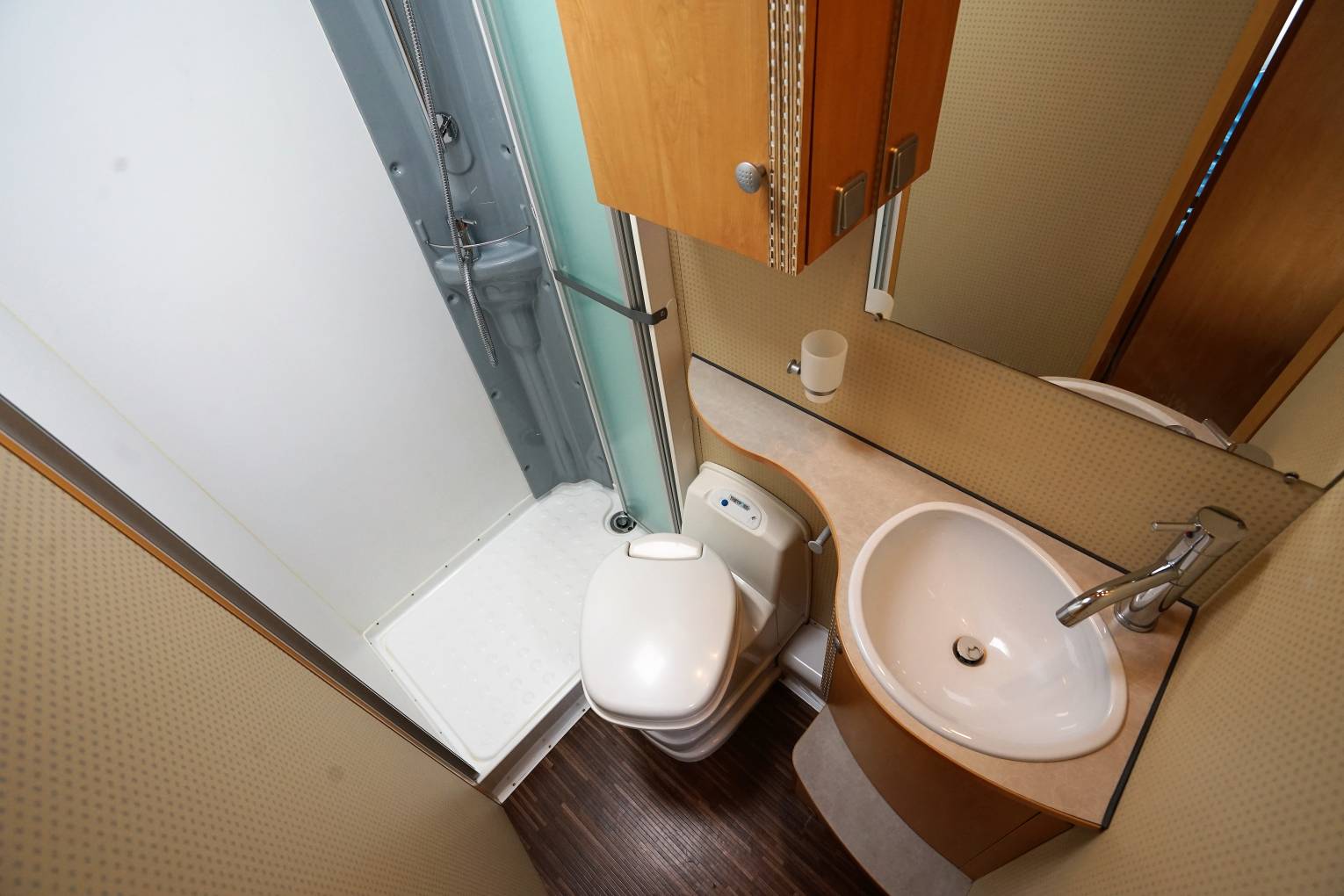 Desirable layout with fixed French bed to the rear and spacious L shaped lounge to the front with excellent under bed storage with additional access from an exteranal locker to the rear and overhead locker space and just 6.15 meters long. Adjacent to this is a spacious washroom that includes vanity wash basin, toilet and a good sized separate shower enclosure.