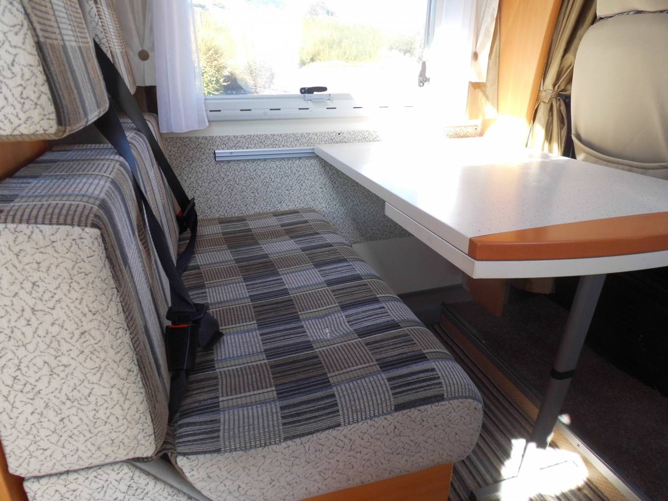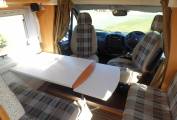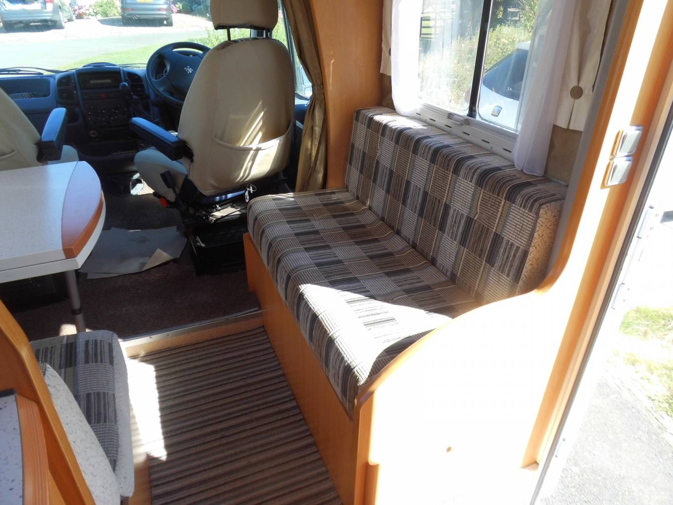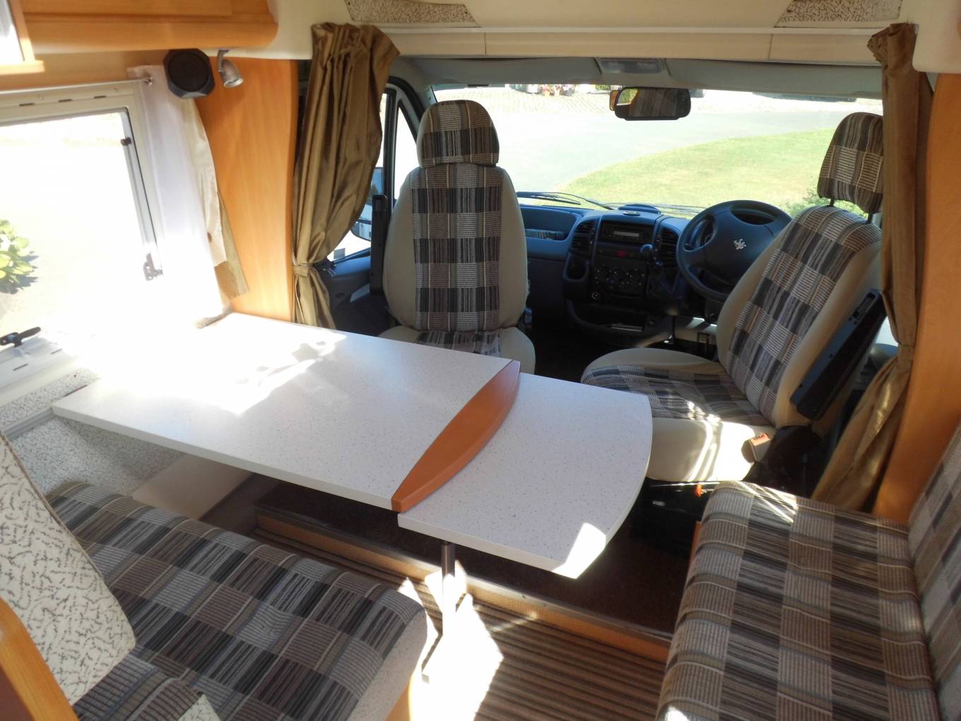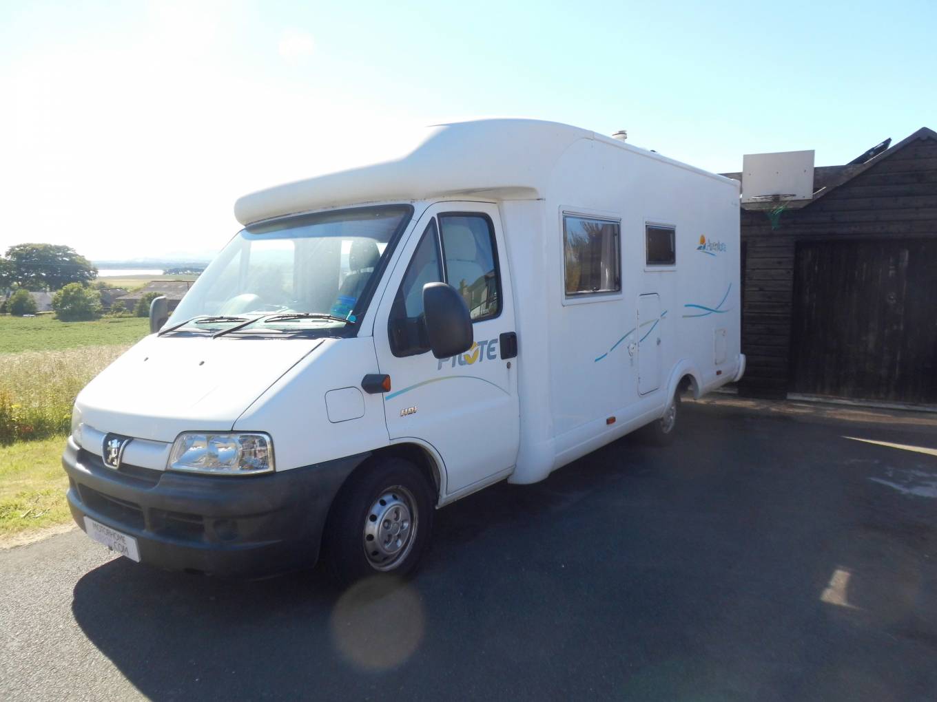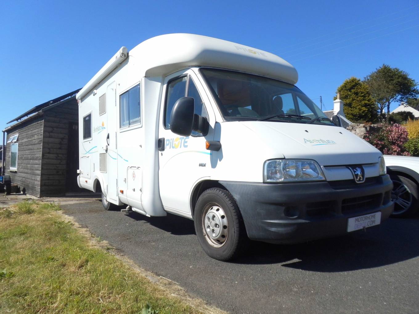We are presenting a very popular Pilote Aventura P650 4 berth family motor home for sale. The main feature is the rear fixed double bed with large storage locker below. The lounge dinning area has ample space for 4 adults comfortably comprising of a forward facing bench seat fitted with 2 travelling seat belts. Side bench and the 2 captains chairs swivel round to the table which extends. This area also transforms into the 2nd double bed. The well equipped kitchen has a 3 burner hob, oven and grill combined, large fridge, separate freezer and kitchen sink also plenty of cupboard space. Washroom is a good size with a WC, screened off shower cubicle and wash hand basin. Other features include Fianna awning, reversing camera, tow bar, bike rack, external access to the large locker under the fixed bed. New tyres and stainless steel exhaust fitted also a turbotune DT engine management module to improve economy and power. Good service history. For further information please call one of the team on 01324 334 995.