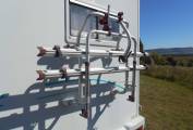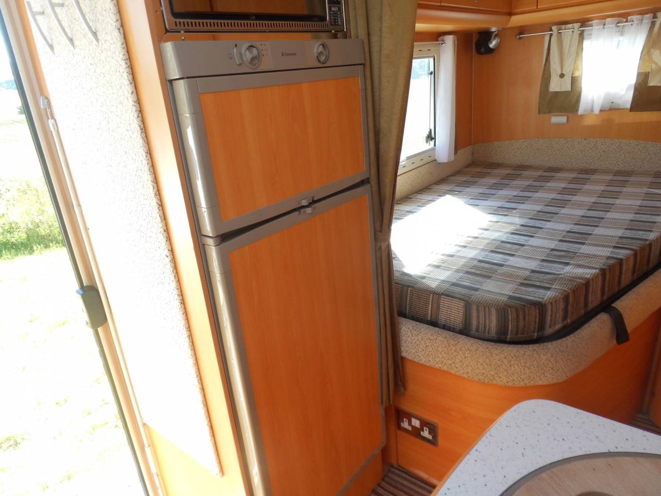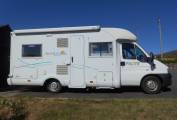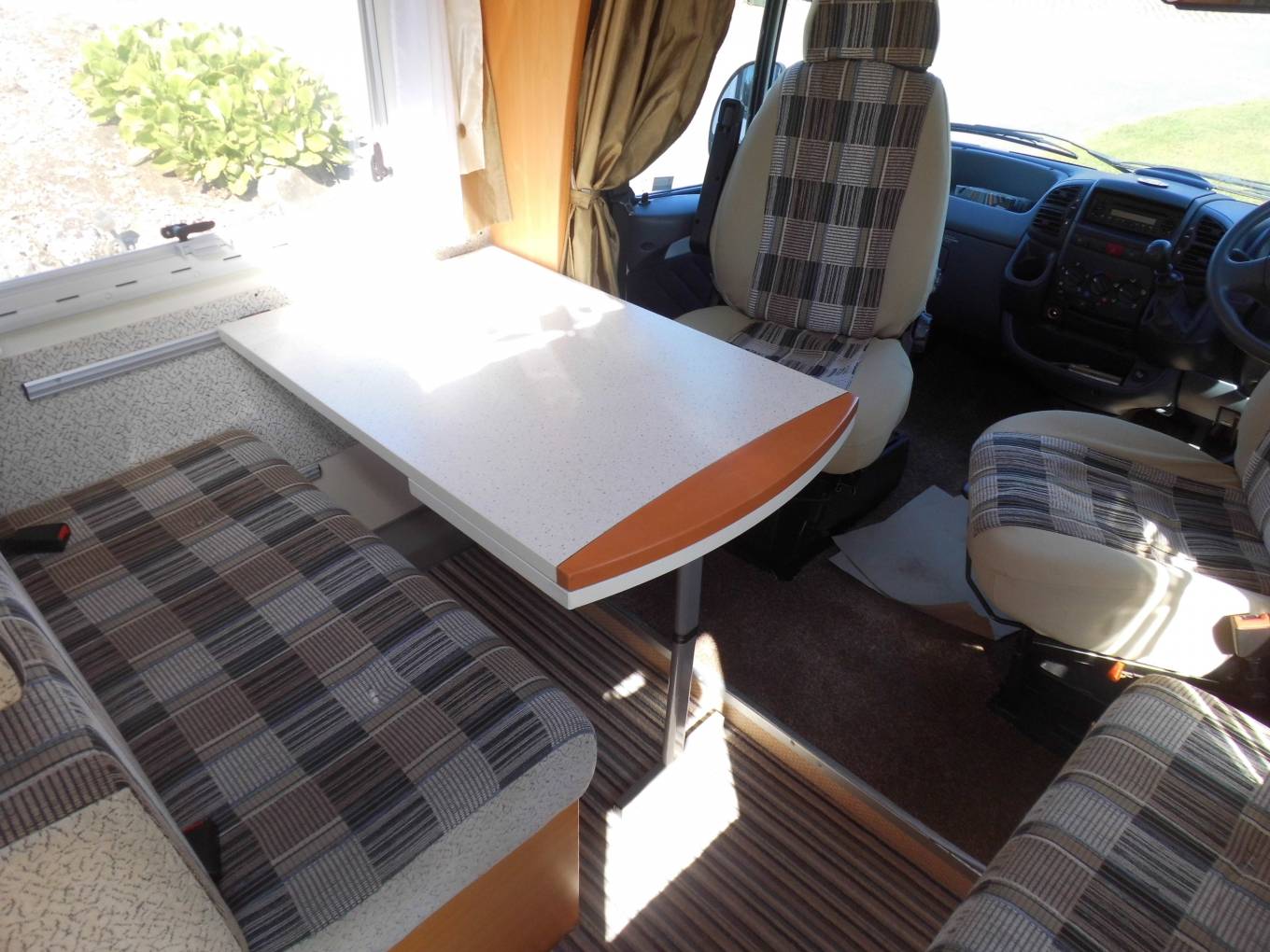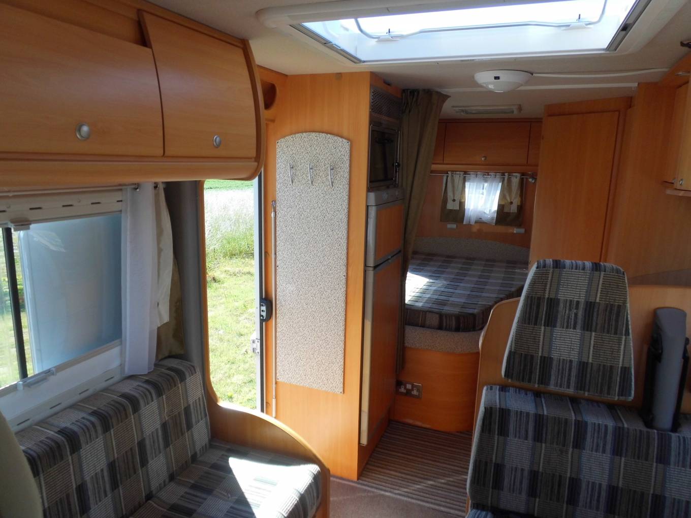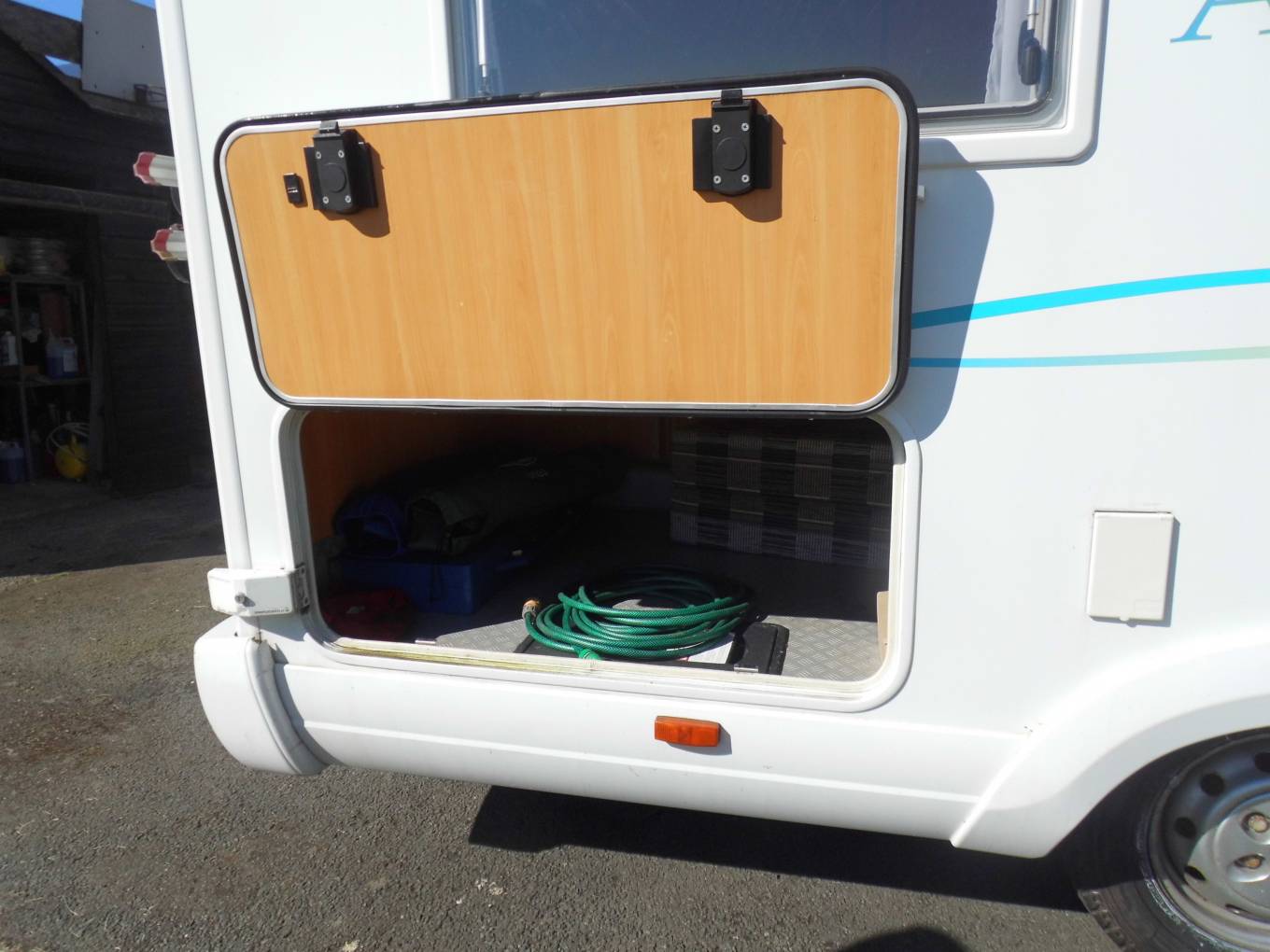 We are presenting a very popular Pilote Aventura P650 4 berth family motor home for sale. The main feature is the rear fixed double bed with large storage locker below. The lounge dinning area has ample space for 4 adults comfortably comprising of a forward facing bench seat fitted with 2 travelling seat belts. Side bench and the 2 captains chairs swivel round to the table which extends. This area also transforms into the 2nd double bed. The well equipped kitchen has a 3 burner hob, oven and grill combined, large fridge, separate freezer and kitchen sink also plenty of cupboard space. Washroom is a good size with a WC, screened off shower cubicle and wash hand basin. Other features include Fianna awning, reversing camera, tow bar, bike rack, external access to the large locker under the fixed bed. New tyres and stainless steel exhaust fitted also a turbotune DT engine management module to improve economy and power. Good service history. For further information please call one of the team on 01324 334 995.