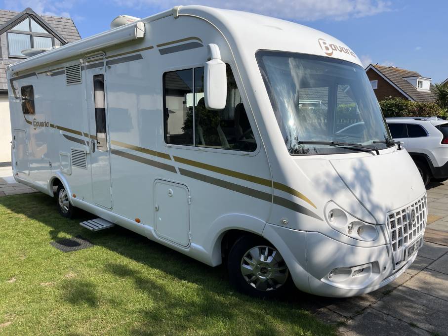 Pilote Bavaria 1740 Style, Luxury A Class, 4 Berth Motorhome with Rear Island Bed. This motorhome is built on the Fiat Ducato with the 3 litre engine, it has been well maintained with last service and Hab Check done Aug 2023 and has one owner from new. At the rear is the bedroom with island bed and next to this is the bathroom area with separate shower compartment. In the center there is a well equipped kitchen including a microwave and at the front is the lounge area with pull down bed and captains seats. This is a high quallity motorhome with a beautifully deigned and finished interior. It comes with Cab Air Con, Cruise Control, 4 Seat Belts, Rear Camera, Alarm, DAB Radio, Sat Nav, Gas Low System, Satelite TV, Canopy Awning, Blown Air Heating, Electric Step and Bike Rack. An excellent example, available for viewing by appointment in Southport, call for more photos and information.