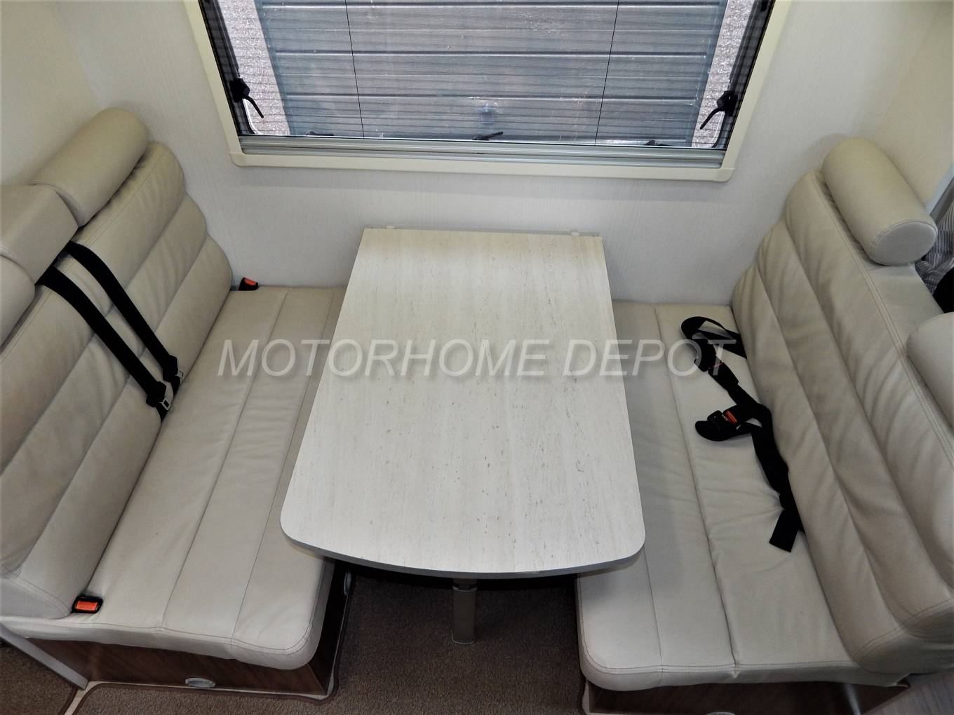 fixed table and a rear facing 2 seater settee. Both these seats have 2