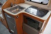 There is no compromise on your living space though – along with the swivelling captain’s chairs you can easily accommodate 6 people in a spacious lounge area. Bright and airy with large skylight this is a perfect place to relax, watch TV through the Snipe Satellite Dome or just watch the world go by.