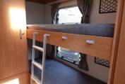 This is a super example of the compact Pilote Cityvan CV57 which is perfect for a family of 4. This A-Class motorhome is finished in a light grey colour and comes with a 3ltr Fiat engine with auto gearbox, Cab a/c, sat nav system and cd/radio. Both front seats swivel to complete a 4-seat dining / lounge area along with the front facing bench that has two additional travelling seat belts. The kitchen area consists of a 2-burner hob, fridge with small freezer compartment and sink with mixer tap. The washroom has a sink, shower, cassette toilet, mirror and cupboard. The pull-down double bed over the cab / dining area is a good size as are the two bunks found in the rear of the motorhome adjacent to the washroom. There is blown air heating throughout, blinds and fly screens on all windows and ample storage space. Externally you will find the gas locker complete with two gas cylinders, a Fiamma roll-out awning complete with Fiamma Day Room, a small locker and a larger locker under the bottom bunk that can be accessed from inside and outside. Other extras include a TV and microwave.