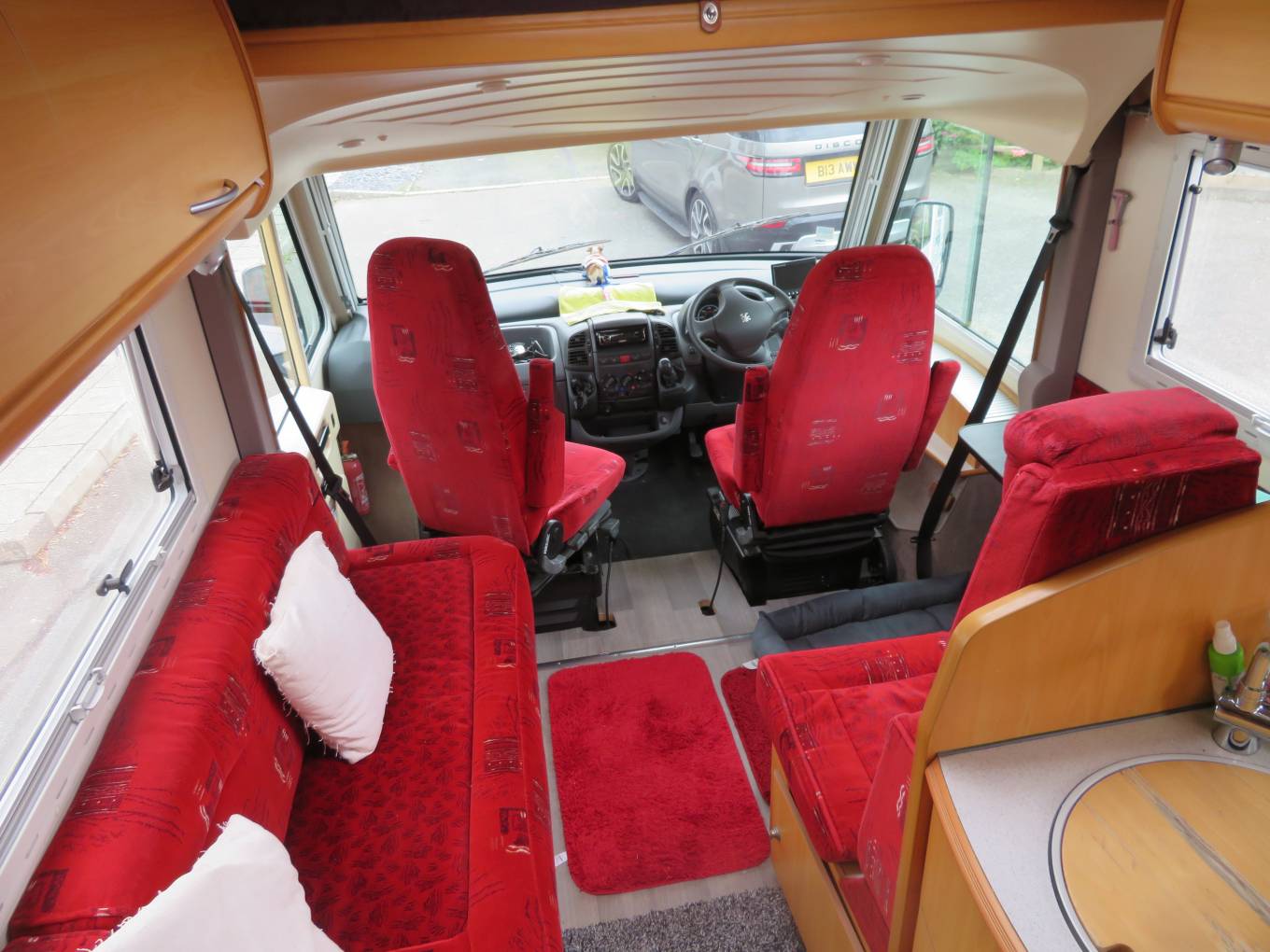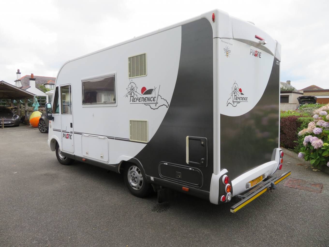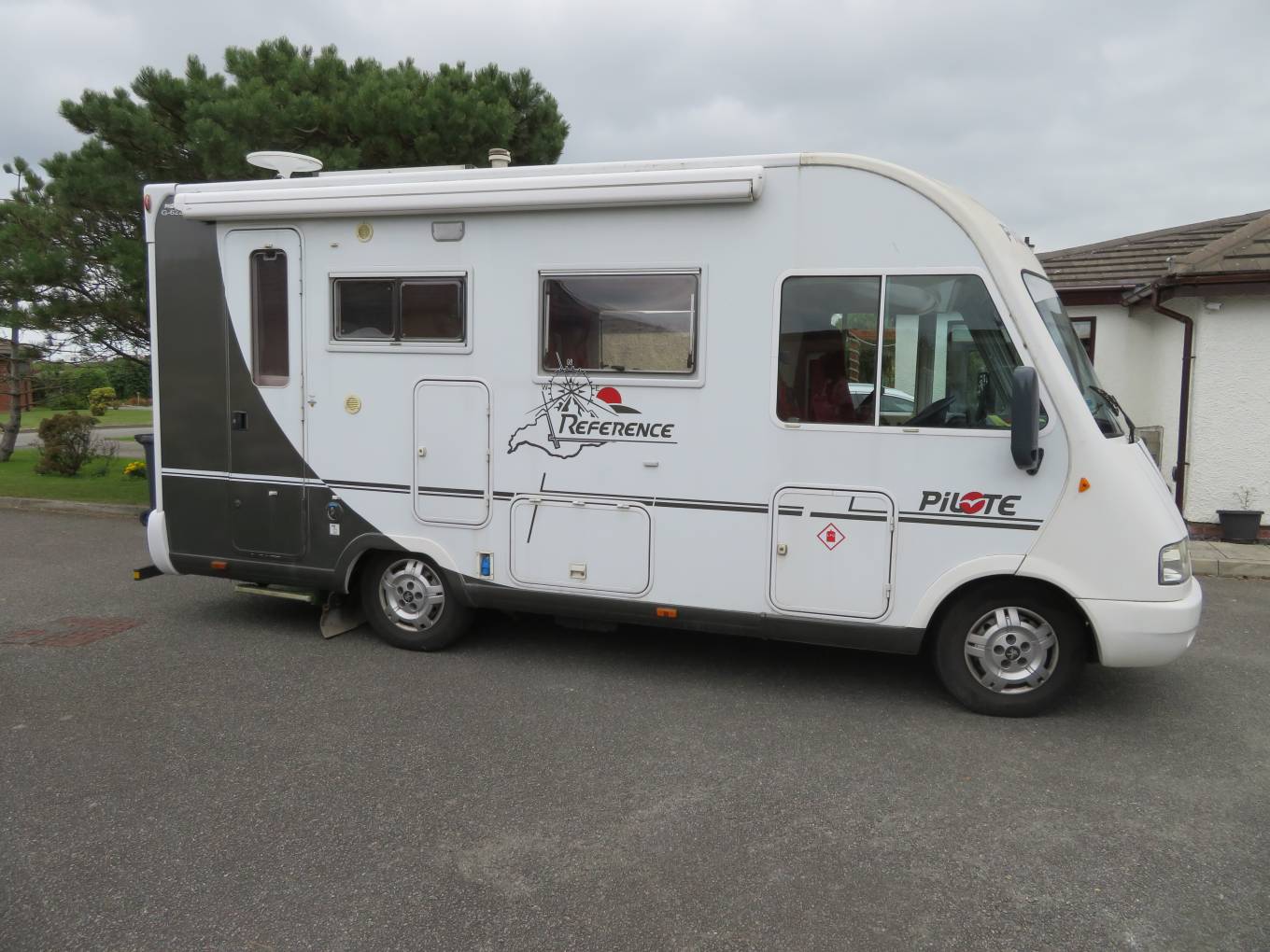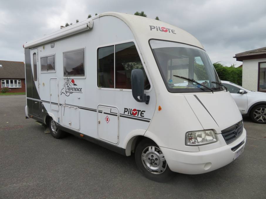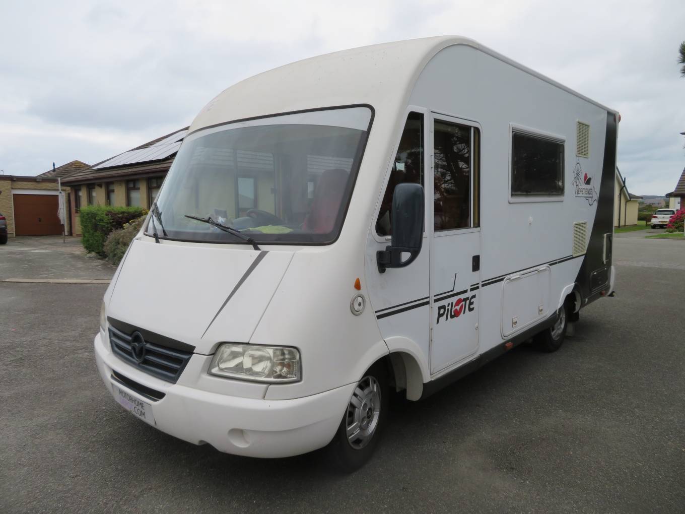 Motorhome Depot North Wales present a very nice Pilote Reference G622 A Class Motorhome, This 2006 model has covered just 43,000 miles and has an MOT until July 2022. Based on the Peugeot chassis with its 2.8 engine this 5 berth Pilote 622 really is well laid out. As you enter the rear habitaion door you have a good sized wardrobe to your left next to this is lovely roomy washroom with separate Shower Vanity unit and WC. You then come to the L shaped Kitchen area which is well equipped with Gas hob, Sink, Cooker and lots of workspace and storage, Behind you is a full sized Fridge/Freezer. At the front you have a great lounge area to dine in and relax witch also converts to a double and single bed, The cab seat swivel around and above is a huge drop down bed.