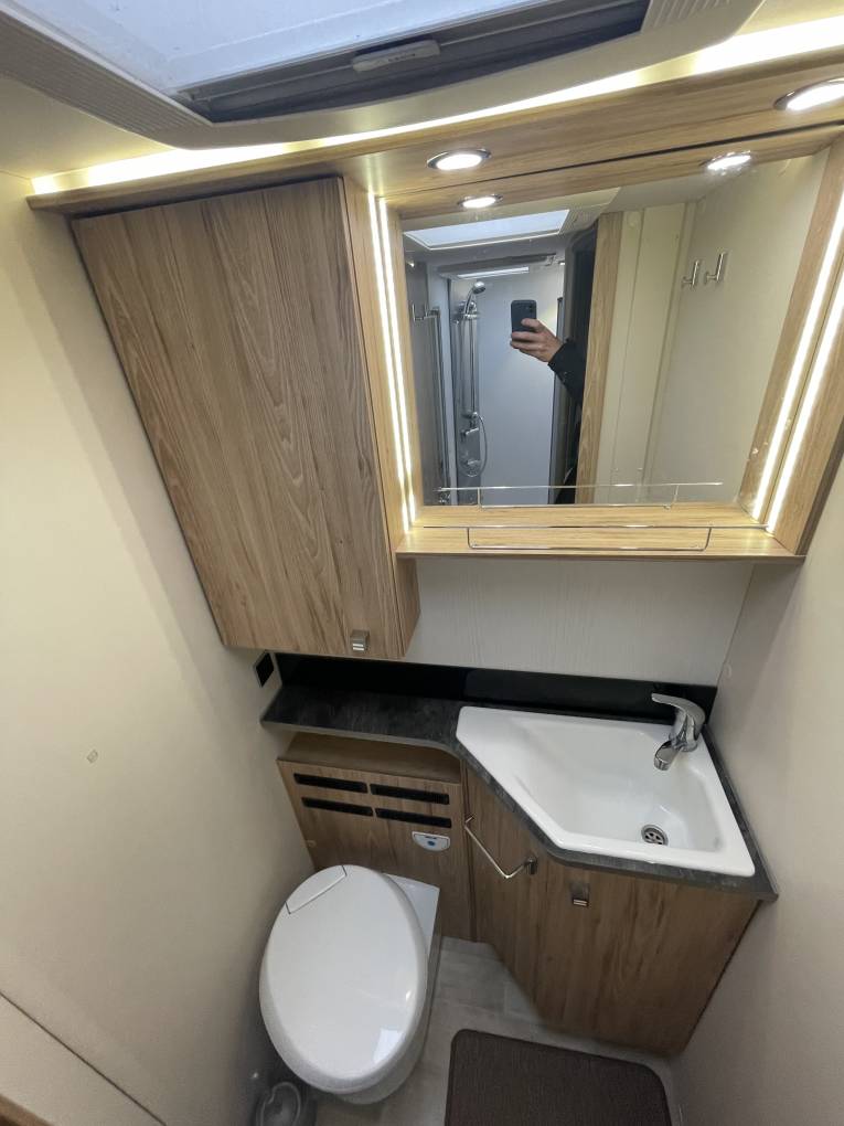 Step inside and you'll be greeted by a spacious and luxurious interior. With its A-class design, this motorhome offers unparalleled comfort and convenience. The centre dinette is perfect for relaxing and dining, while the sink with mixer tap and large bathroom provide all the comforts of home.