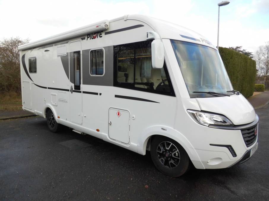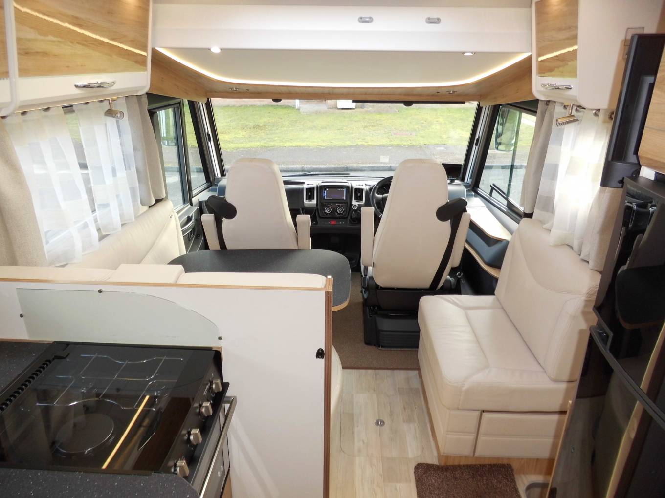 This stunning Pilote G740C Sensation 4 berth A Class,with full leather interior. Year of registration November 2018 this A Class has a 2287 cc diesel engine(150 bhp). Weight 3650kg chassis C1 licence needed, manual gearbox, ABS, driver and passenger airbags, alloy wheels, cab a/c, cruise, radio, rear camera, cab pleated blinds, swivel front seats, 2 double beds, rear seat belts, central locking, flyscreens, electric step, Gaslow fitted, 2 leisure battery's, free view TV, Glasscoat and a tracker. The stunning kitchen area is elegant with it's gloss and chrome fixtures. It comes equipped with a three ring gas hob,oven and grill, fridge and a sink/worktop area with ample storage cupboards and drawers. The dining area consists of full white leather seats and a polished table with the captain seats swivelling round to make a perfect socialising area. At the rear of the motorhome there is a luxurious fixed double bed. A further pull down double bed is made up above the cab. The bedroom has a large amount of storage in the form of cupboards and under bed drawers.. There is also a very nice washroom area with separate spacious shower and toilet.This motorhome has only done 1300 miles and is like new inside and out. Still has a full Warranty.