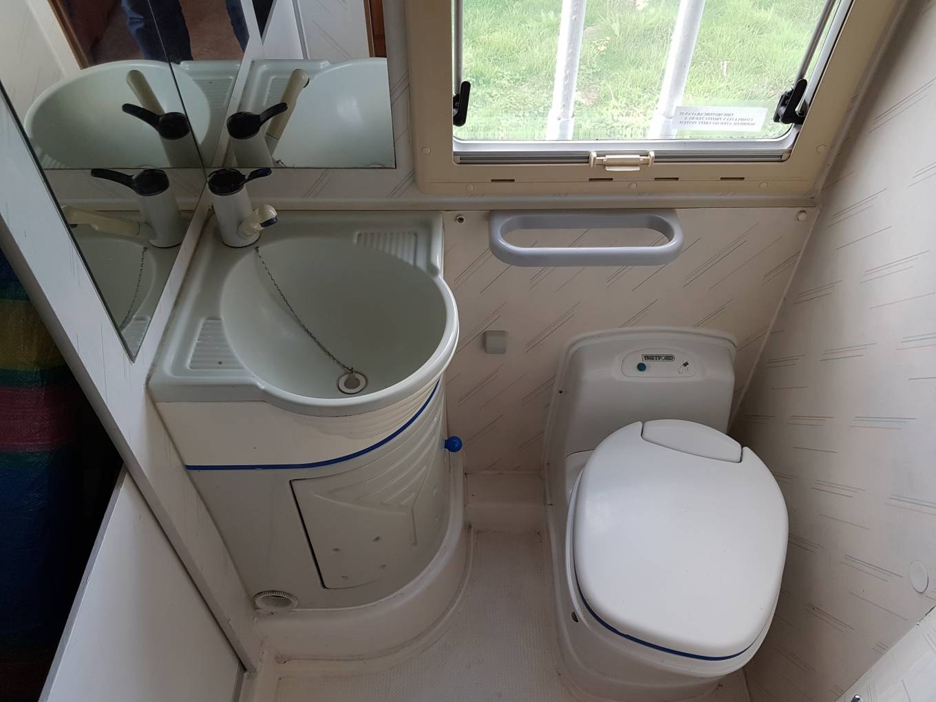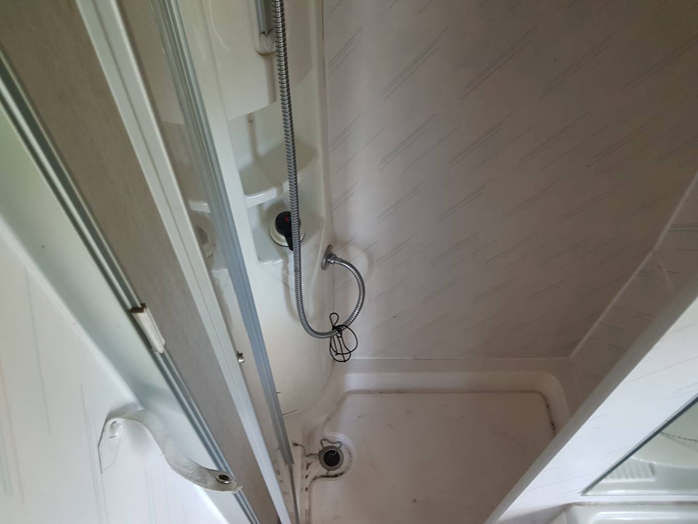 Elsewhere, there is blown air heating, hot water, a 3 way fridge, 3 burner hob, a grill and good onboard and underseat clean and waste water tanks. The shower cubicle is screened off from the washroom and loo.