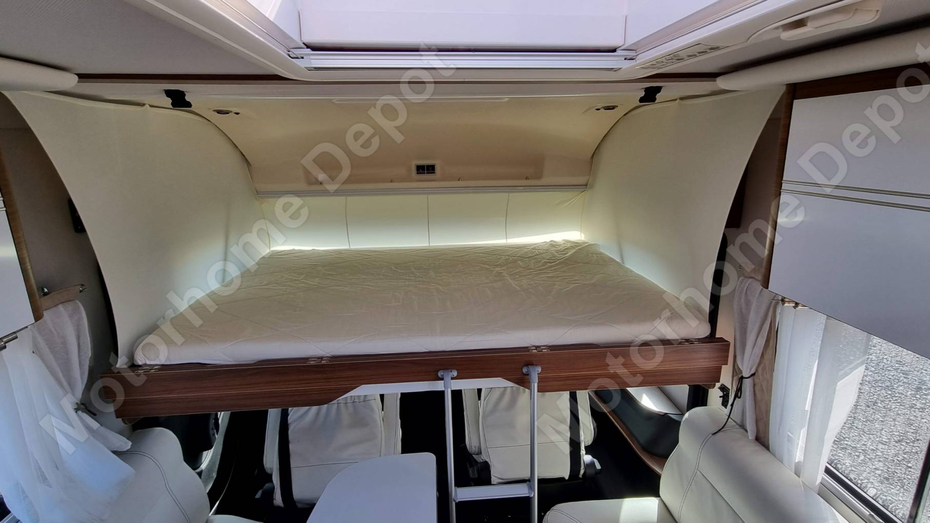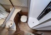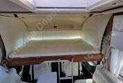 The lounge settees can make two single beds however the featured bed in this luxury motorhome is the manual pulldown generous-sized double bed that will sleep two comfortably.