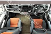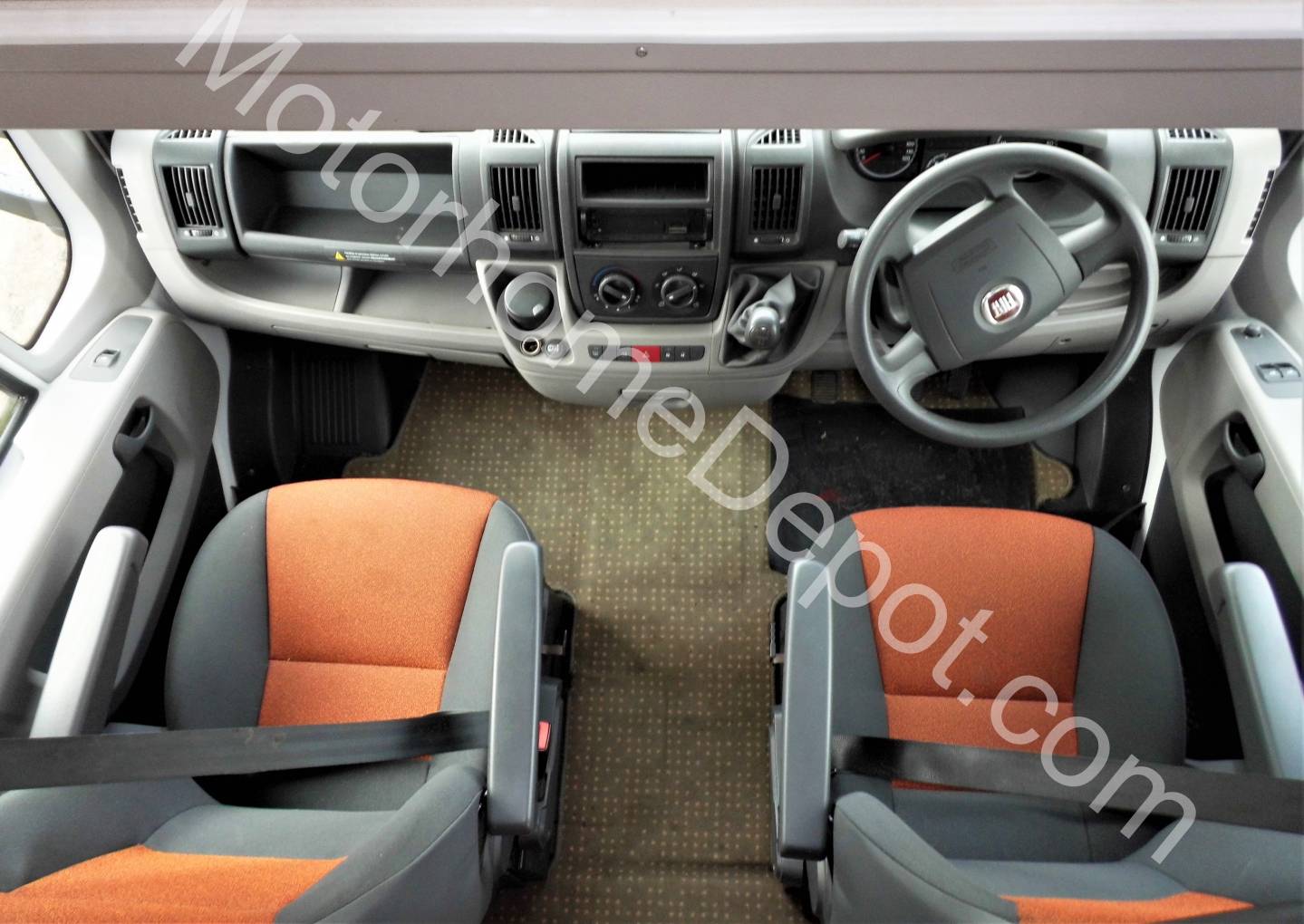 Moving on to the cab area, there is an over-cab double bed with ladder access. The driver and passenger seats are Captain swivel seats and have 3 point seat belts, there is a radio-CD-MP3 player with removable head for security. There are also electrically operated windows and mirrors