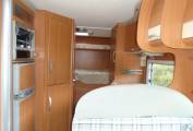 The model is classed as a 3 bed with a full size double bed at the rear of the vehicle, the single bed is made up at the dining area, 4 seat belts are installed.