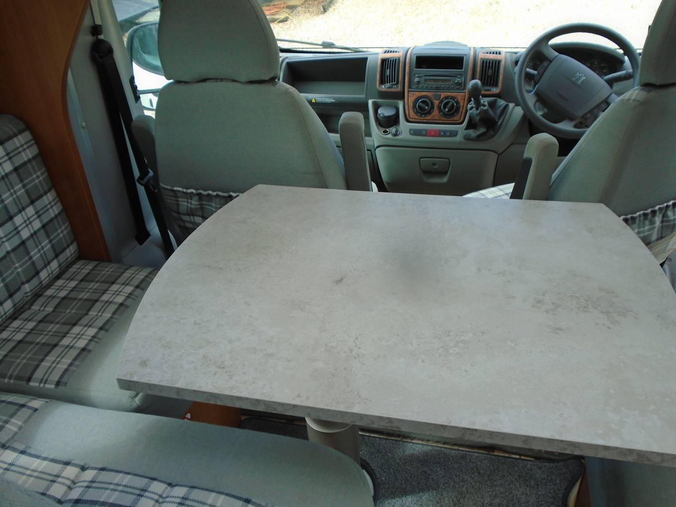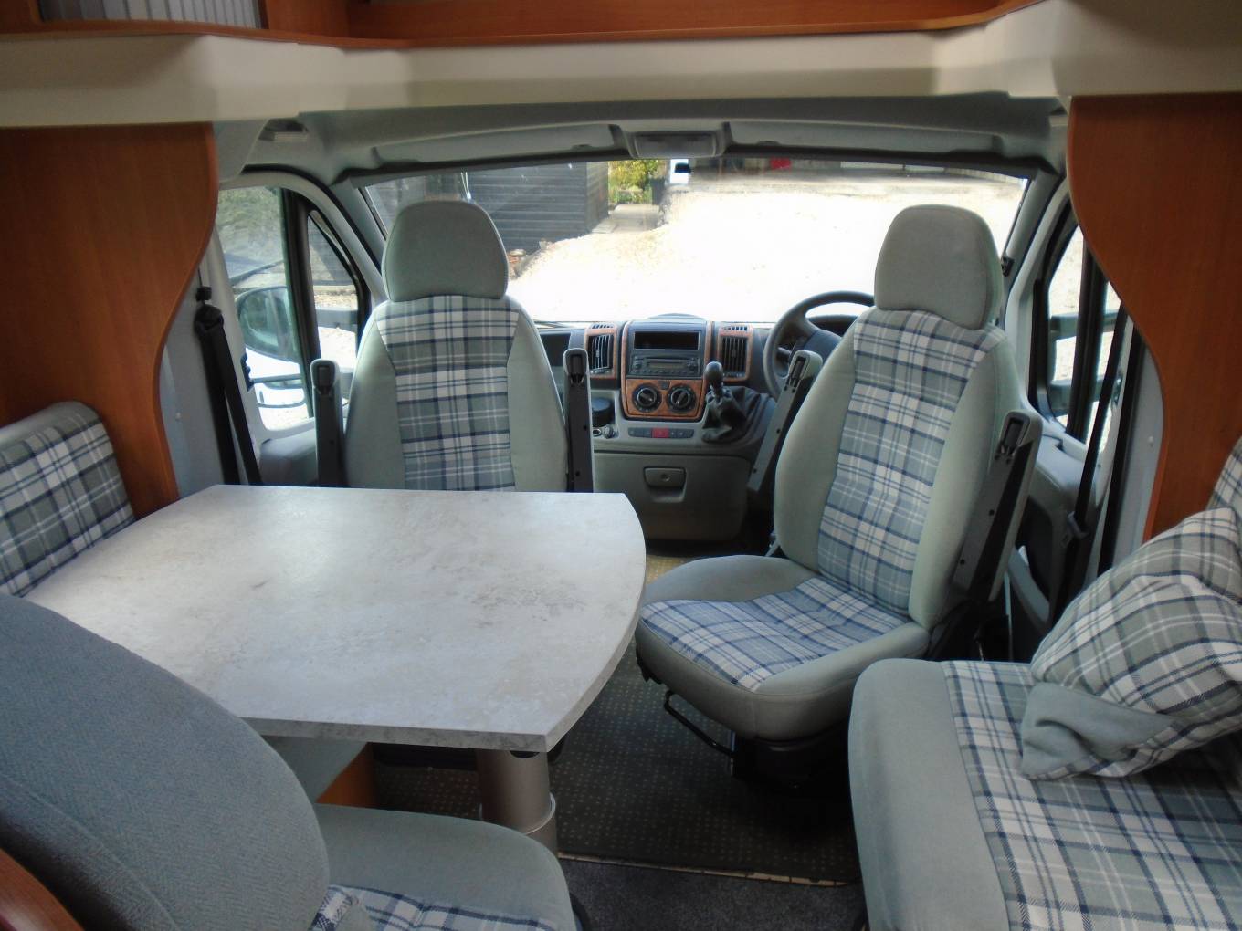 The washroom is on one side of the vehicle with wc and shower/sink , there are plenty of overhead cupboards, pilote have a unique design with a double flooR, meaning you dont have anything underslung, the upholstery has been refurbished recently and the internal feels very modern, with all seats having the same fabric.