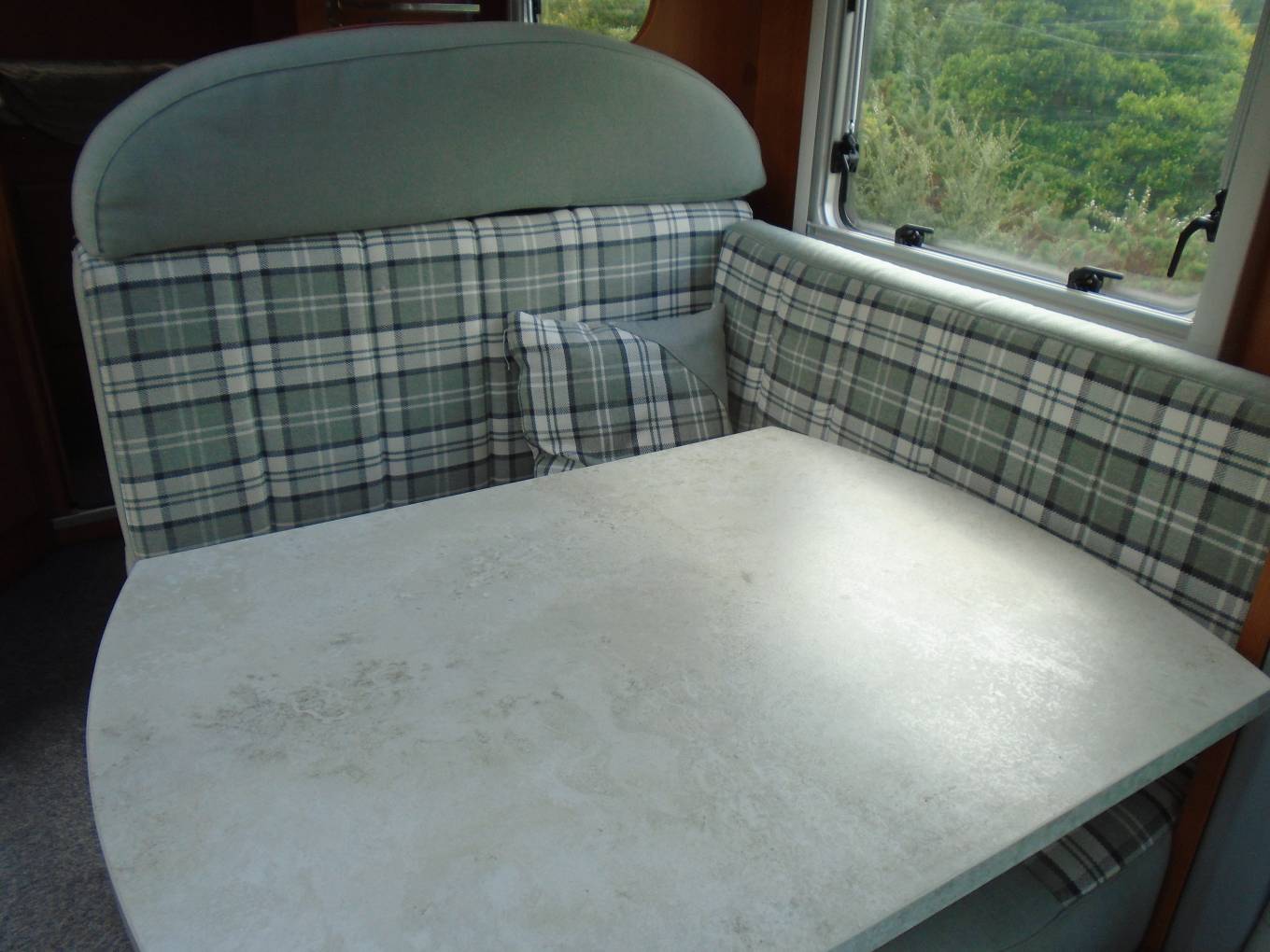 The dining area seats 5 or 6 easily around a fixed table that moves every way, the seats swivel round also in captain seat style.