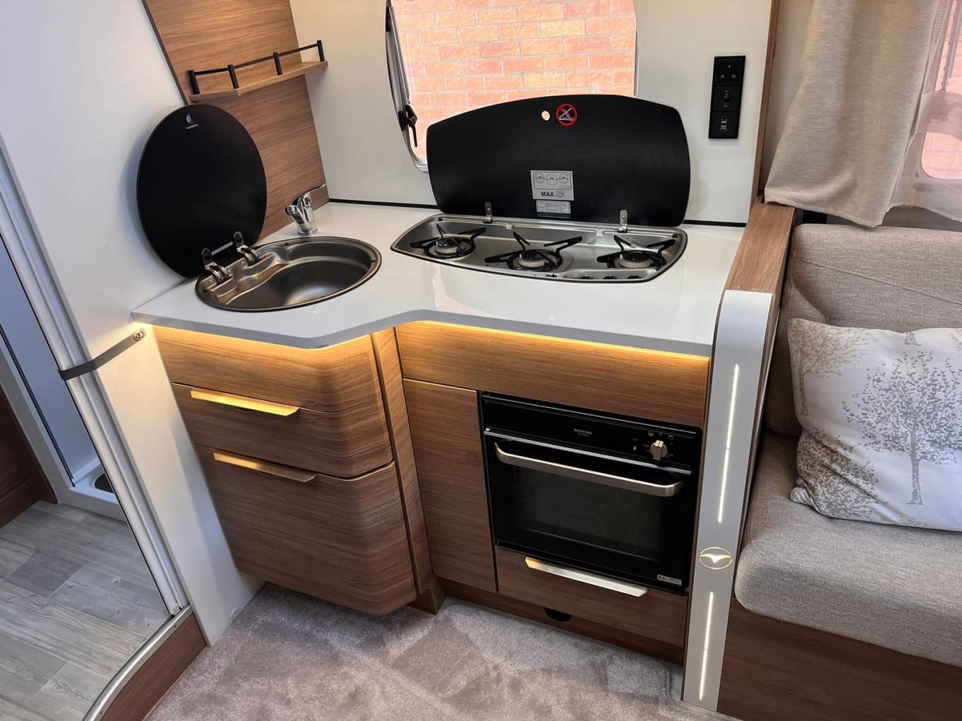 being the tall fridge freezer with capacity of 160l as well as a 3 burner gas