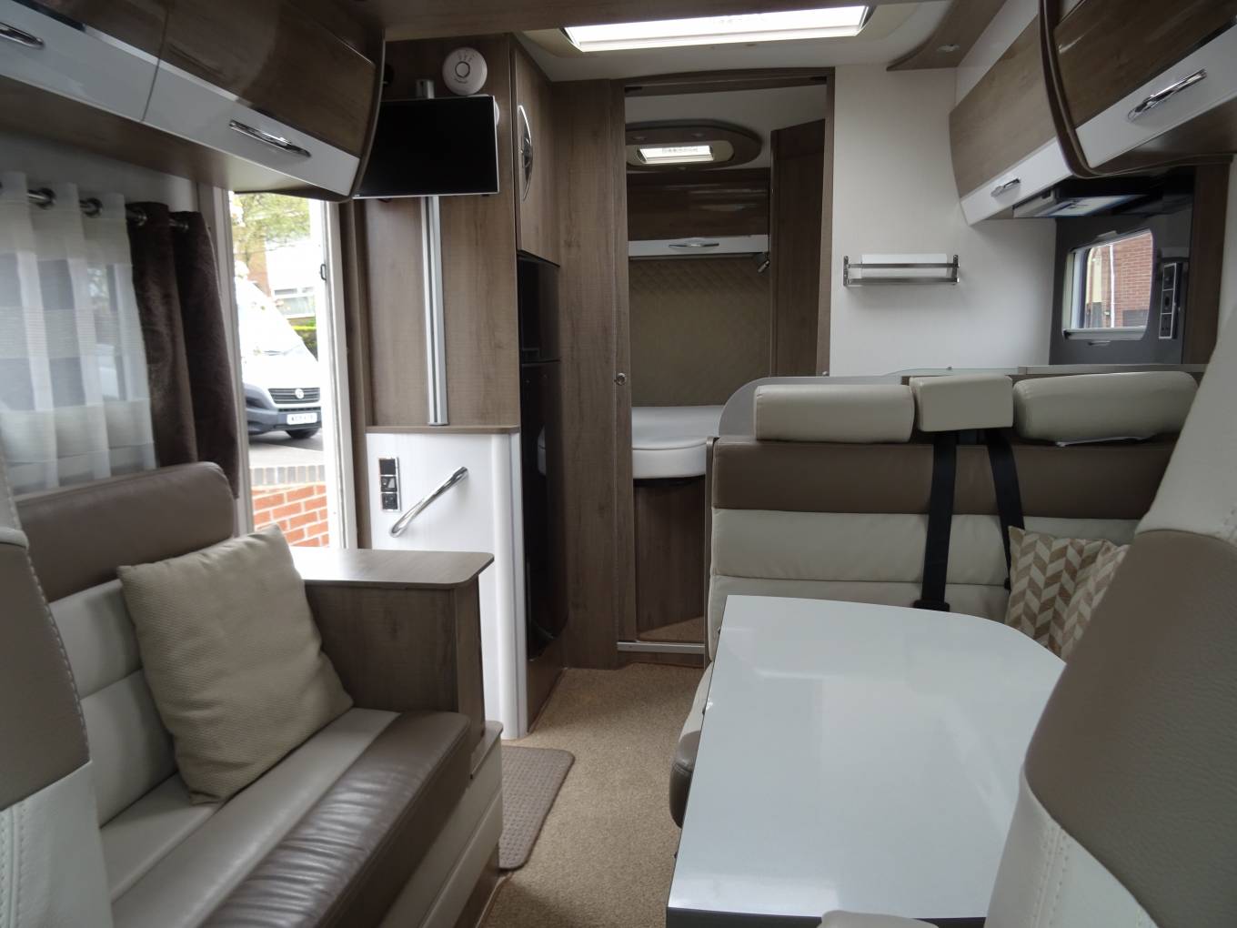 Here we have a luxury Pilote motorhome which has been beautifully maintained by its owners who have had it since new. The interior units are finished in high gloss and the upholstery is cream.