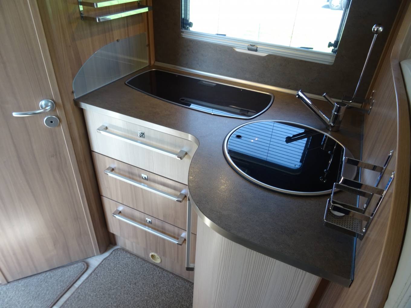 Spacious luxury in this very well maintained premium brand motorhome. 5 star accommodation for 3 lucky people, this A class motorhome comes with lots of extras to suit any discerning purchaser! Only 2 owners since new and with low mileage, the vehicle has a part leather dinette, well equipped kitchen and spacious rear washroom with full height shower. Sleeping accommodation is in a capacious pull down double towards the front with a comparatively generous single as part of the dinette. Very easy on the eye as it is well designed to provide a comfortable, airy and spacious motorhome experience. Priced to sell, it would be ideal for an entry into the motorhome lifestyle or for anyone seeking to trade up. Viewings will be in Barnard Castle - eye test not required!